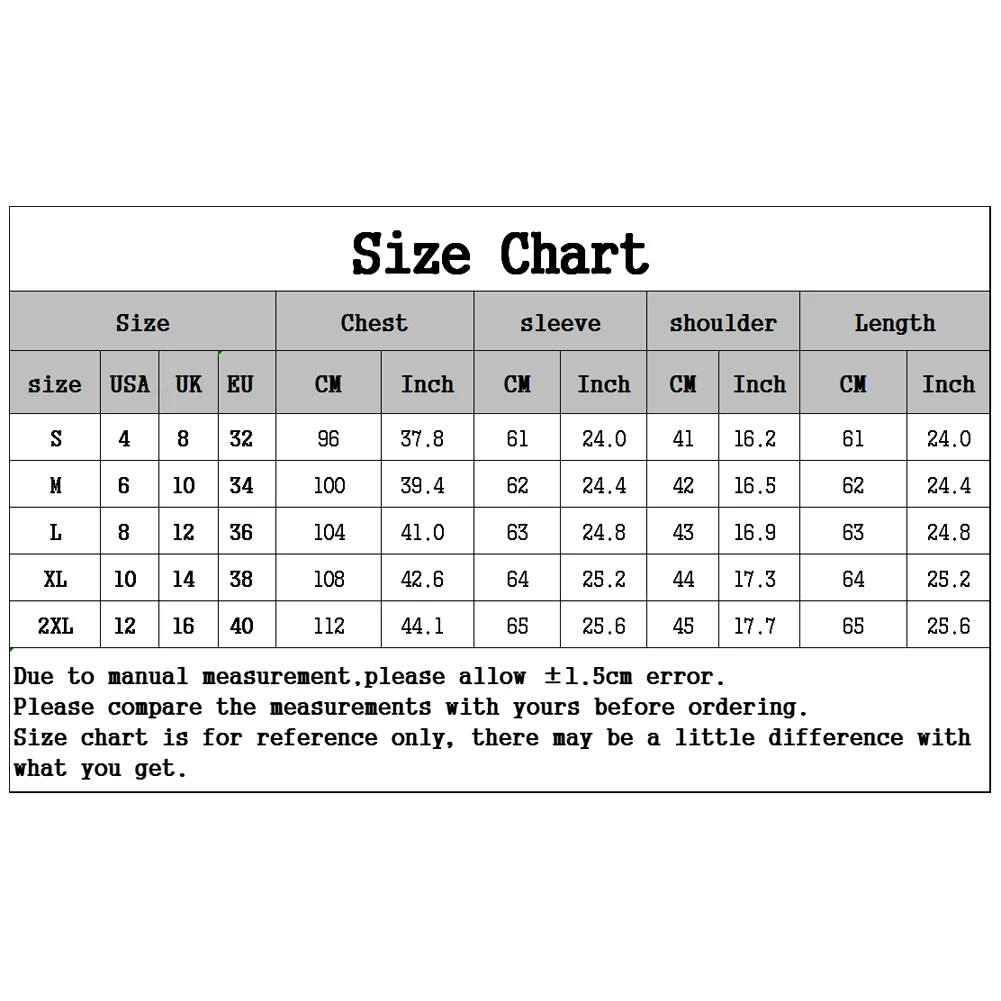 [Наш Размер 2XL] Обхват груди: 112 см/44,1 ", рукав: 65 см/25,6", плечо: 45 см/17,7 ", Длина: 65 см/25,6" (прибл.)