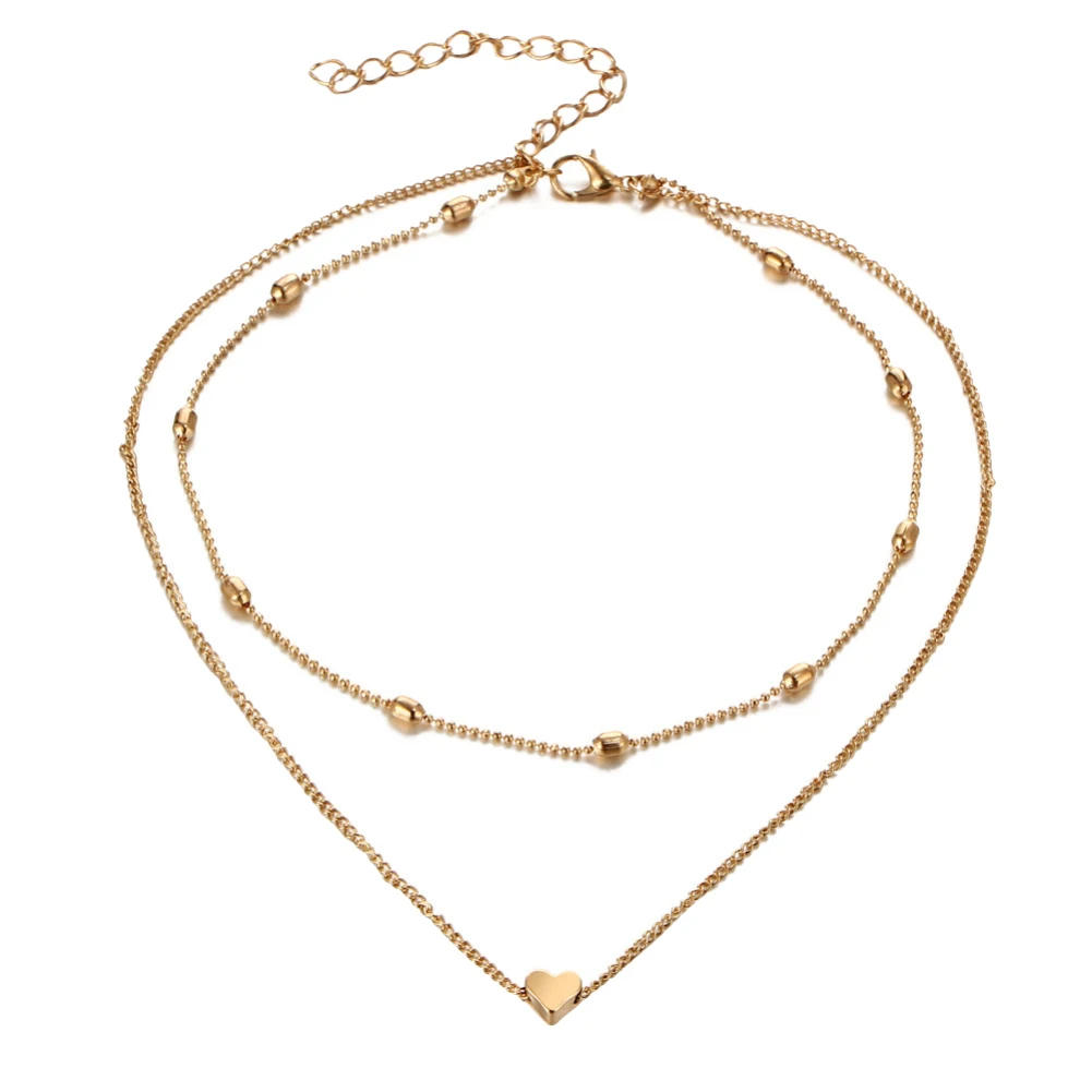 Многослойный дизайн с сердечком и бусинами, элегантный и очаровательный.