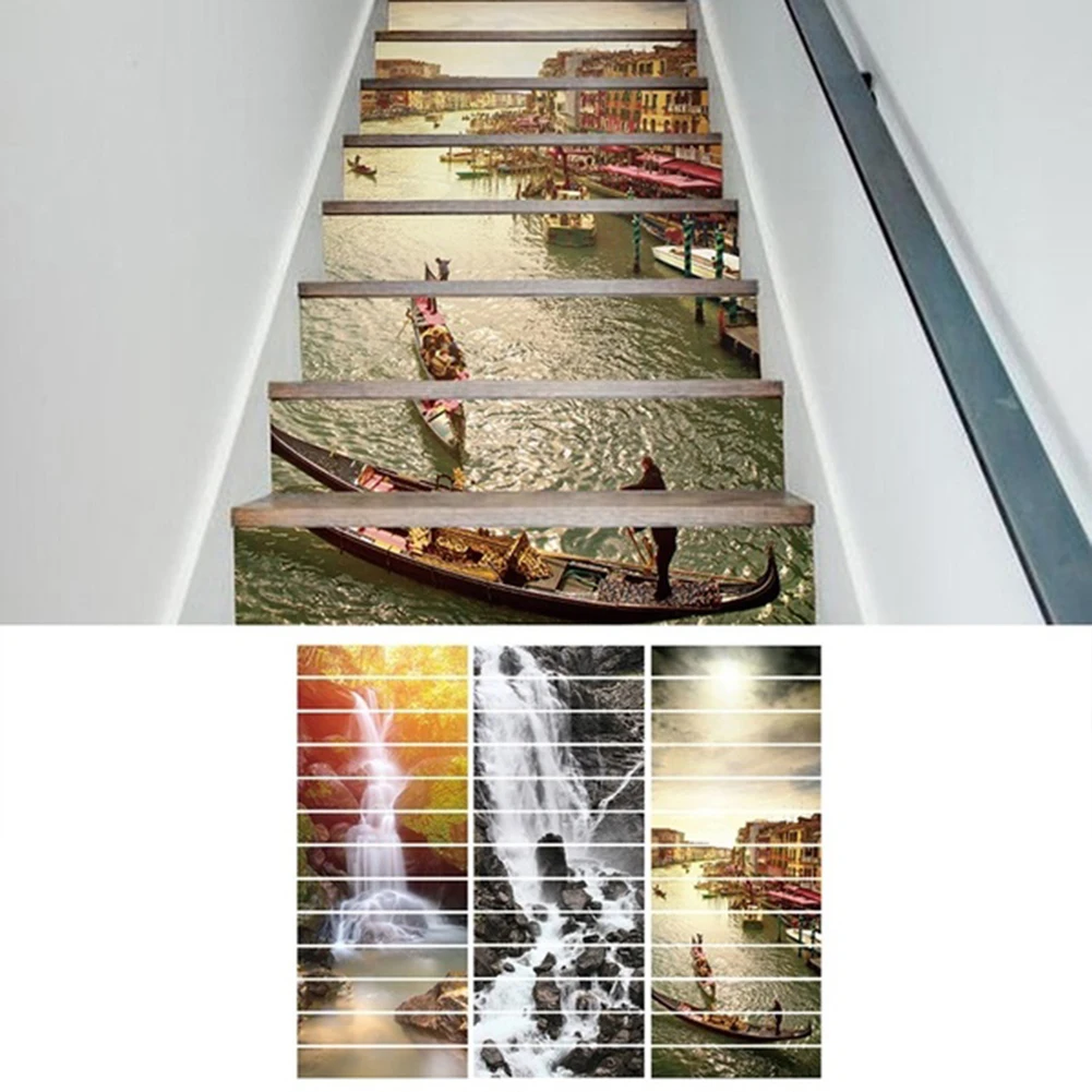 Водонепроницаемые 3D-Наклейки для лестницы, водостойкие самоклеящиеся наклейки из ПВХ с водопадом и рекой, 13 шт.
