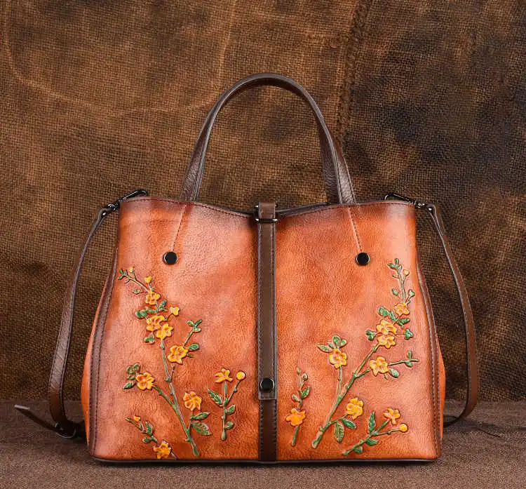 Винтажная женская сумка из натуральной кожи с тиснением в виде цветов, женская сумка через плечо ручной работы, женские сумки через плечо из воловьей кожи