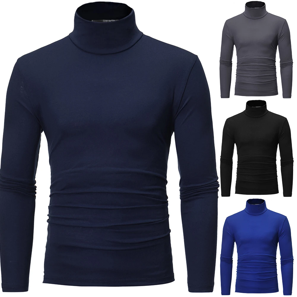 Модная мужская футболка с высоким воротом, однотонный топ с длинным рукавом, футболка с высоким воротником, джемпер, мужская одежда