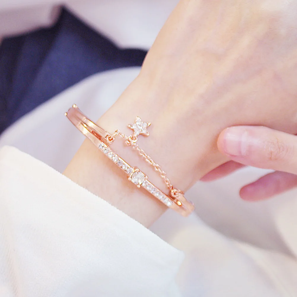Модная женская звезда кулон цепочка блестящие стразы инкрустированный браслет ювелирные изделия подарок