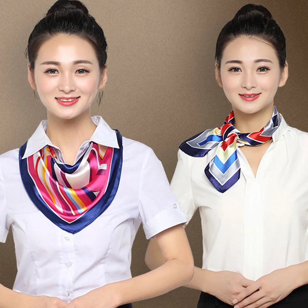 Авиакомпания женщина цветочный принт квадратный шелковый шарф повязка шейный платок обертывание