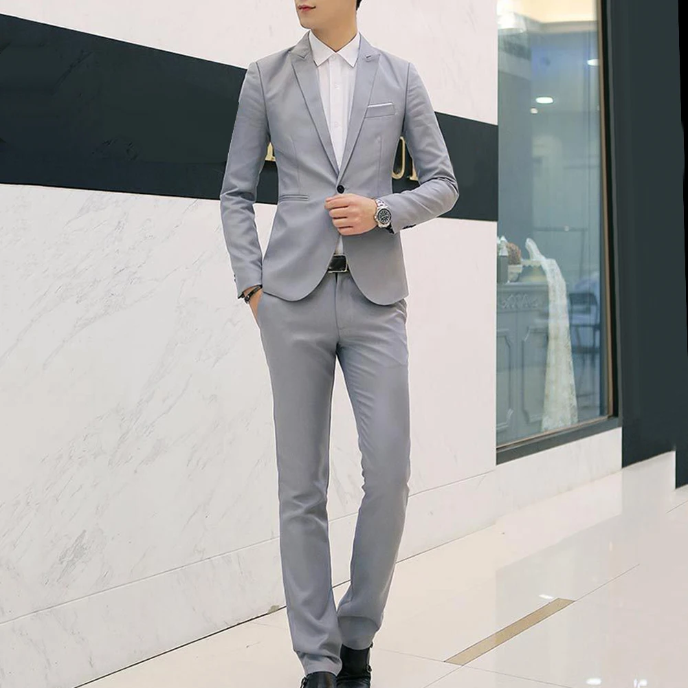 Модные мужские костюмы со штанами, однотонный мужской блейзер, тонкий и подходит для свадьбы, мужской смокинг жениха, костюм для выпускного вечера (пиджак + брюки), костюм homme