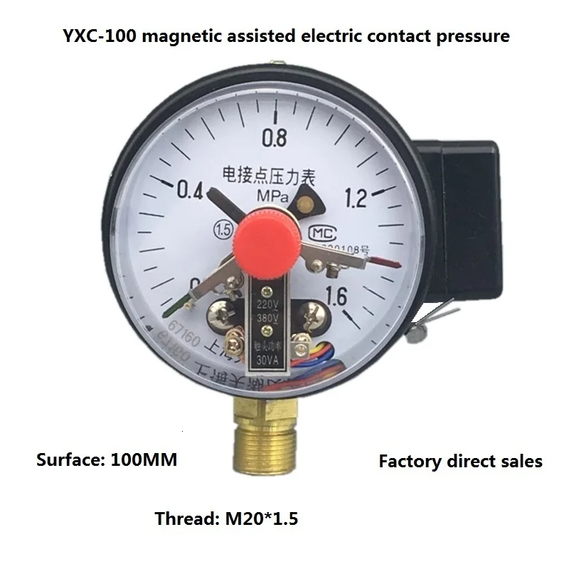 Манометр YXC-100 электромагнитный вспомогательный осевой боковой Электрический контактный манометр контроль вакуумный стол 0-1 МПа Барометр