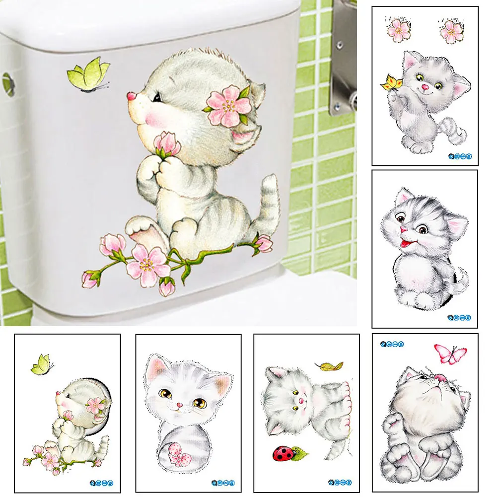 Съемный милый кот ванная комната туалет крышка стикер водонепроницаемый Туалет Наклейка Декор