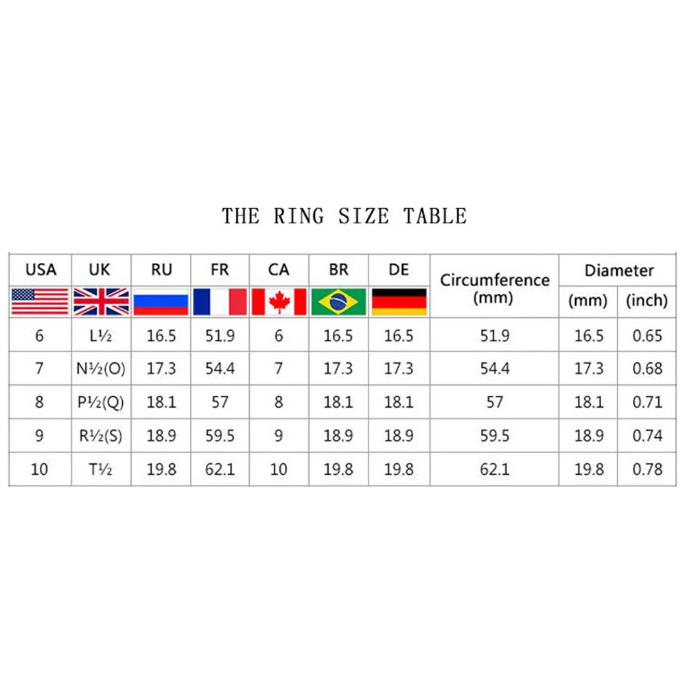 Размер США 6 (диаметр): 16,5 мм/0,65 "(прибл.)