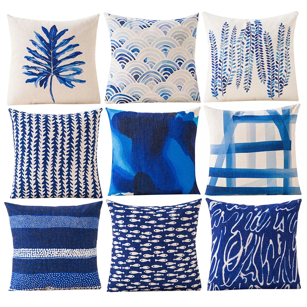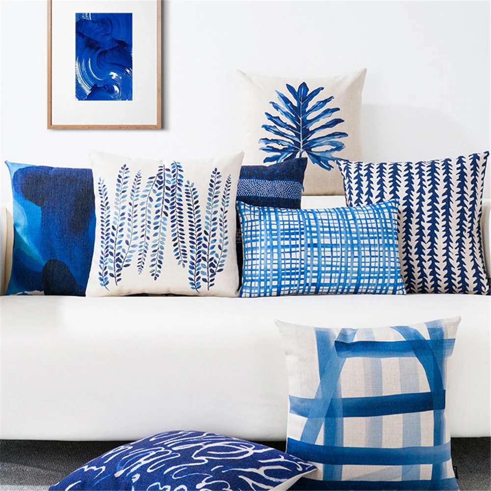 Синий геометрический дизайн, наволочка для подушки, наволочка для дивана, кровати, автомобиля, кафе, Декор