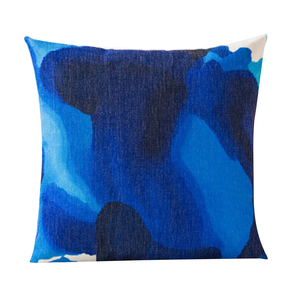 Наволочка с синим геометрическим дизайном, легко сочетается с вашим диваном или кроватью.