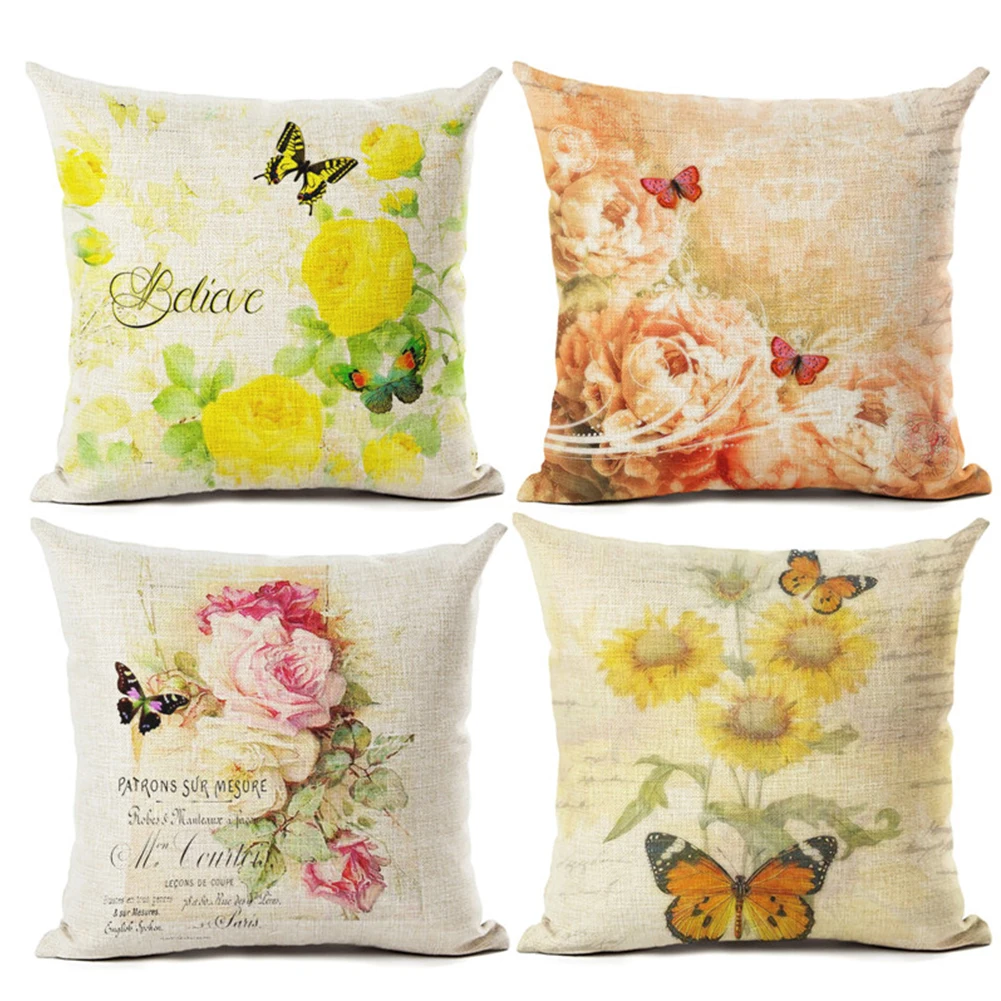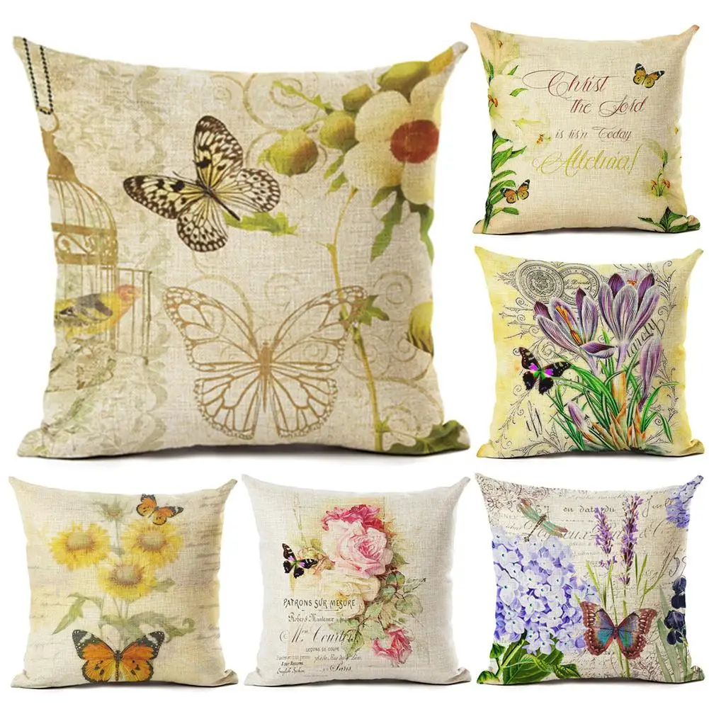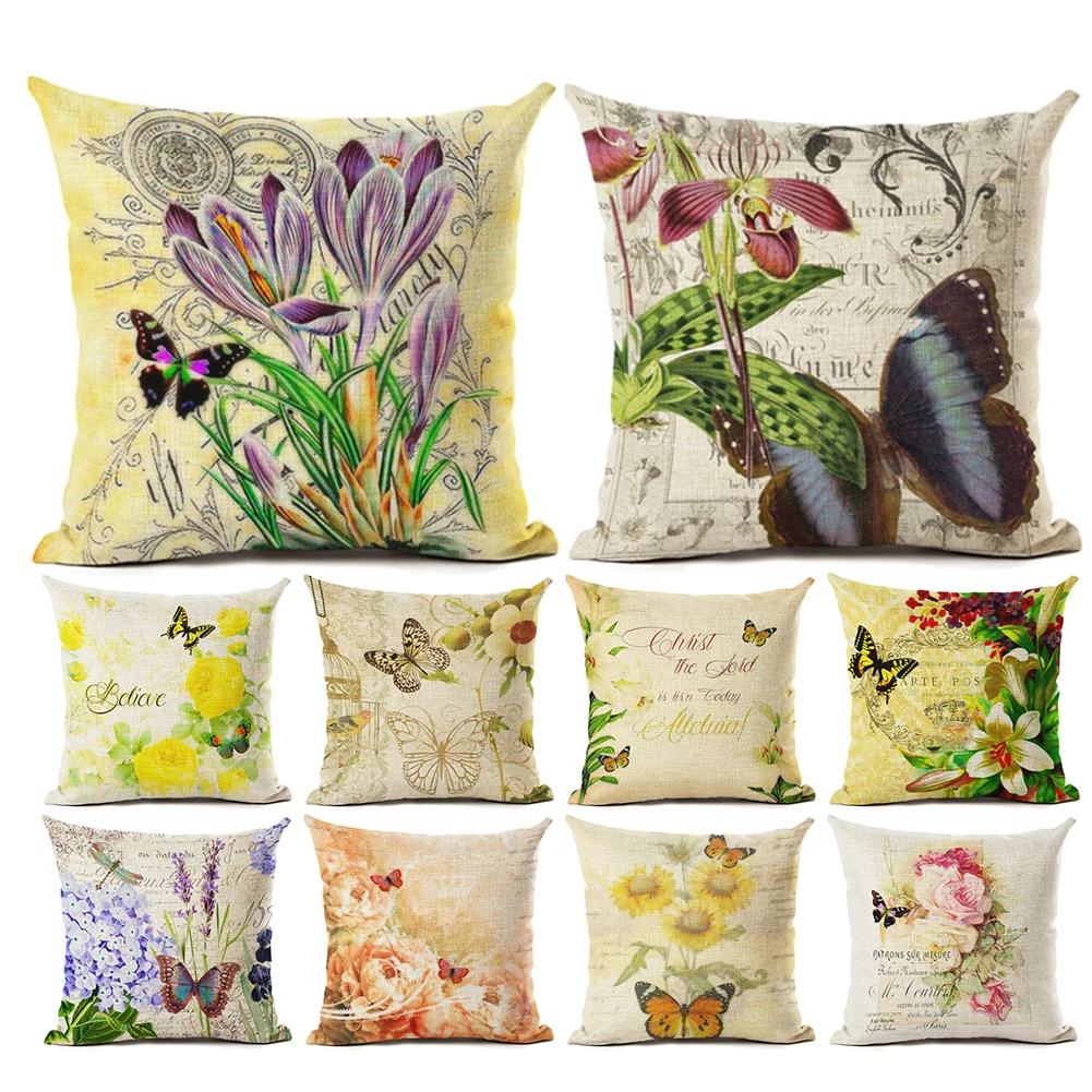 Винтажный чехол для подушки с цветком бабочкой, наволочка для дивана, кровати, декор для кафе