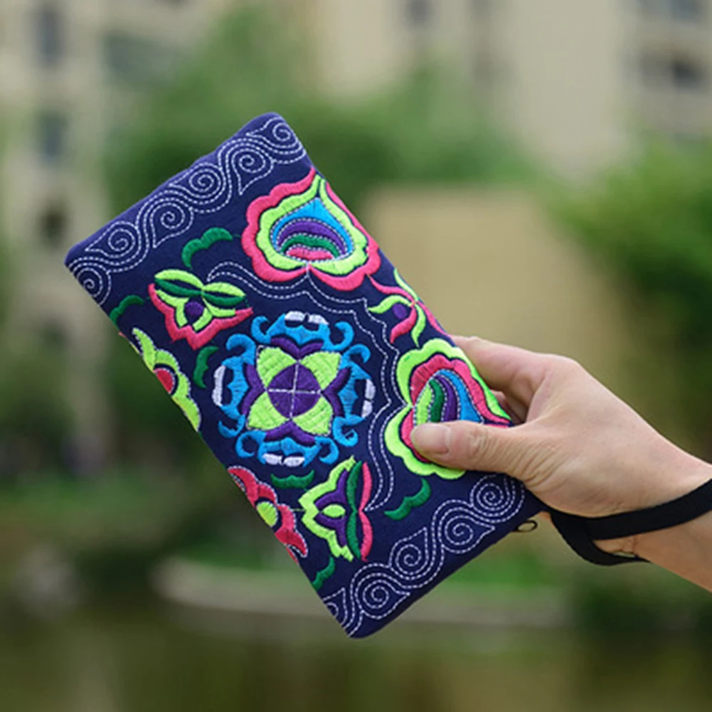 Женский этнический клатч ручной работы с вышивкой на ремешке, Длинный кошелек на молнии