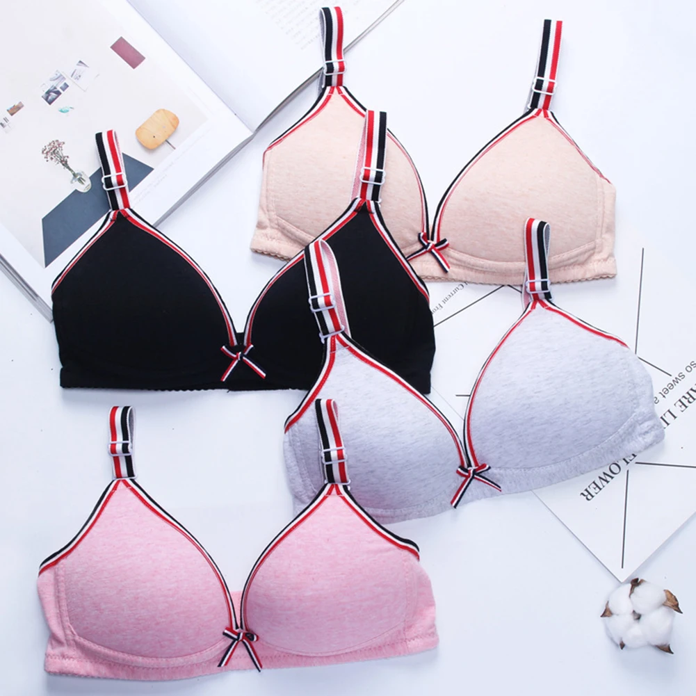 Бюстгальтер с бантиком в полоску без стального кольца для девочек-подростков; Тонкое нижнее белье