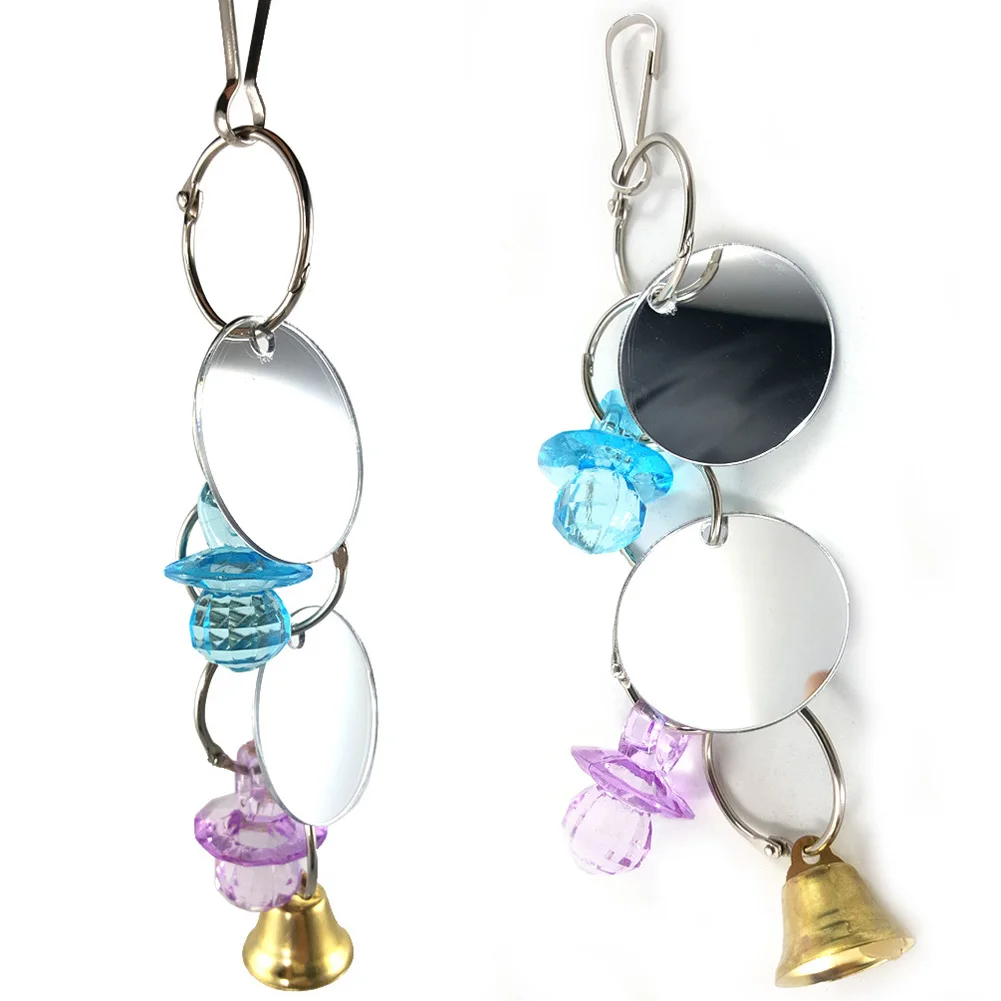 Зеркальный колокольчик акриловая маленькая соска Птица Попугай Жевательная клетка против укусов подвесная игрушка