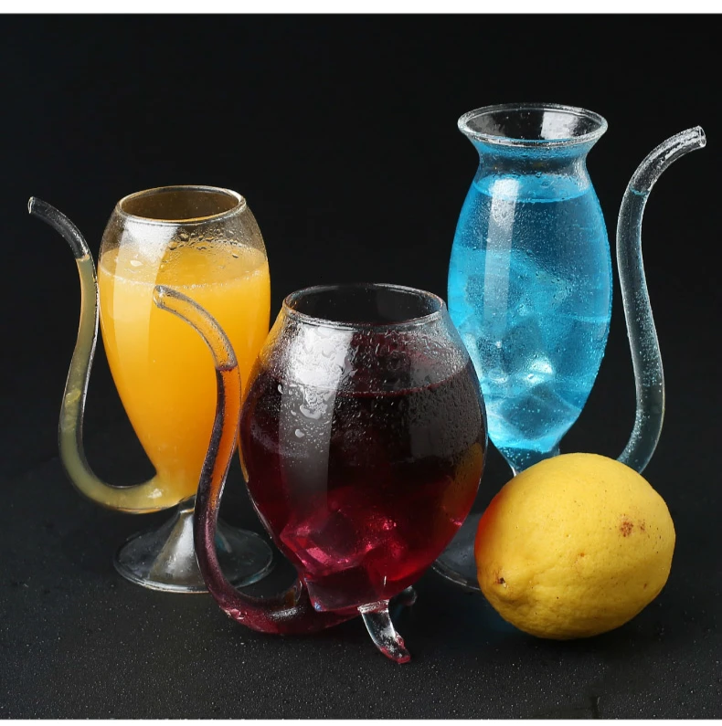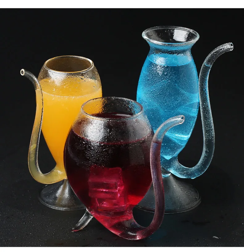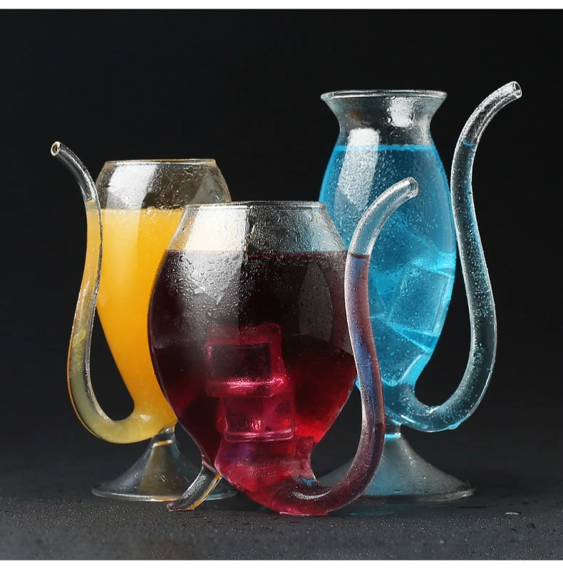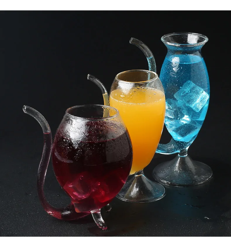 Креативная прозрачная стеклянная чашка для вина, стеклянная посуда, кружка для коктейля, соломенная чашка со встроенной соломенной трубкой для домашнего бара, вечерние бокалы