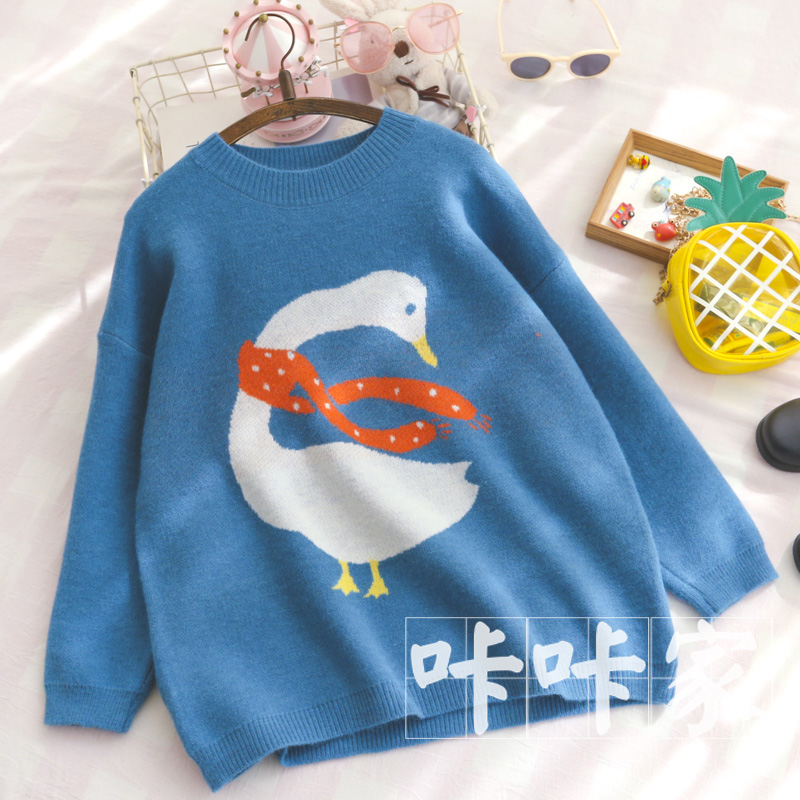 Осенне-зимний японский мягкий пуловер для сестры, Подростковый шарф с сердцем, большой белый гусиный жаккардовый Свободный пуловер, вязаный женский свитер