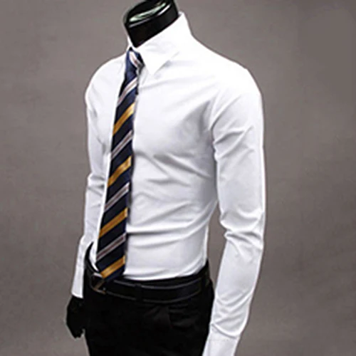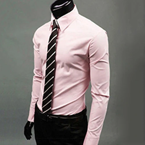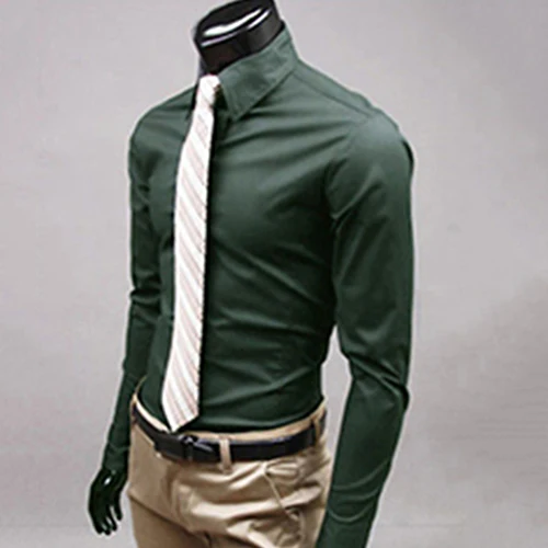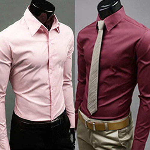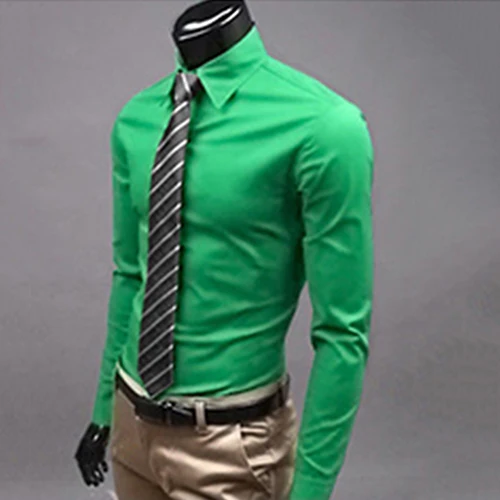 Мужская модная повседневная однотонная приталенная рубашка с длинными рукавами ярких цветов
