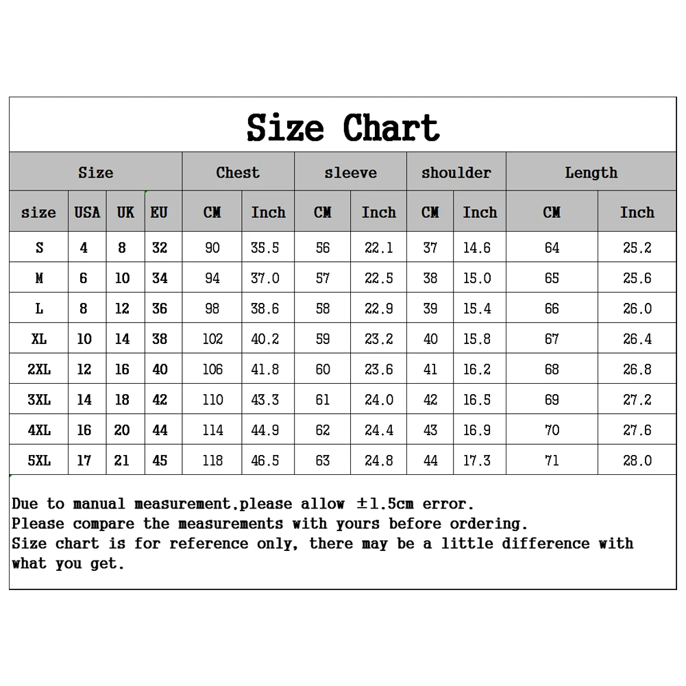 [Наш Размер S] Обхват груди: 90 см/35,5 ", рукав: 56 см/22,1", плечо: 37 см/14,6 ", Длина: 64 см/25,2" (прибл.)