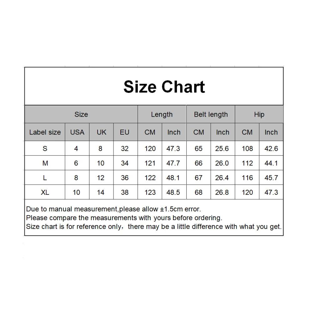 [Our Size XL] Belt Length: 68cm/26.8", Hip: 120cm/47.3", Length: 123cm/48.5" (Approx.)