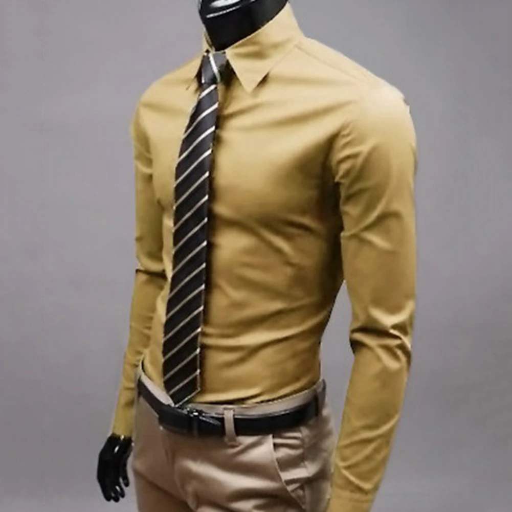 Модная мужская однотонная приталенная рубашка с длинным рукавом и отложным воротником