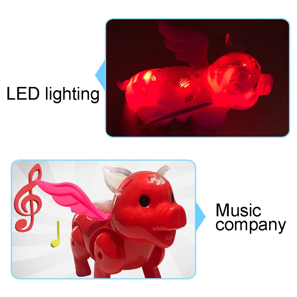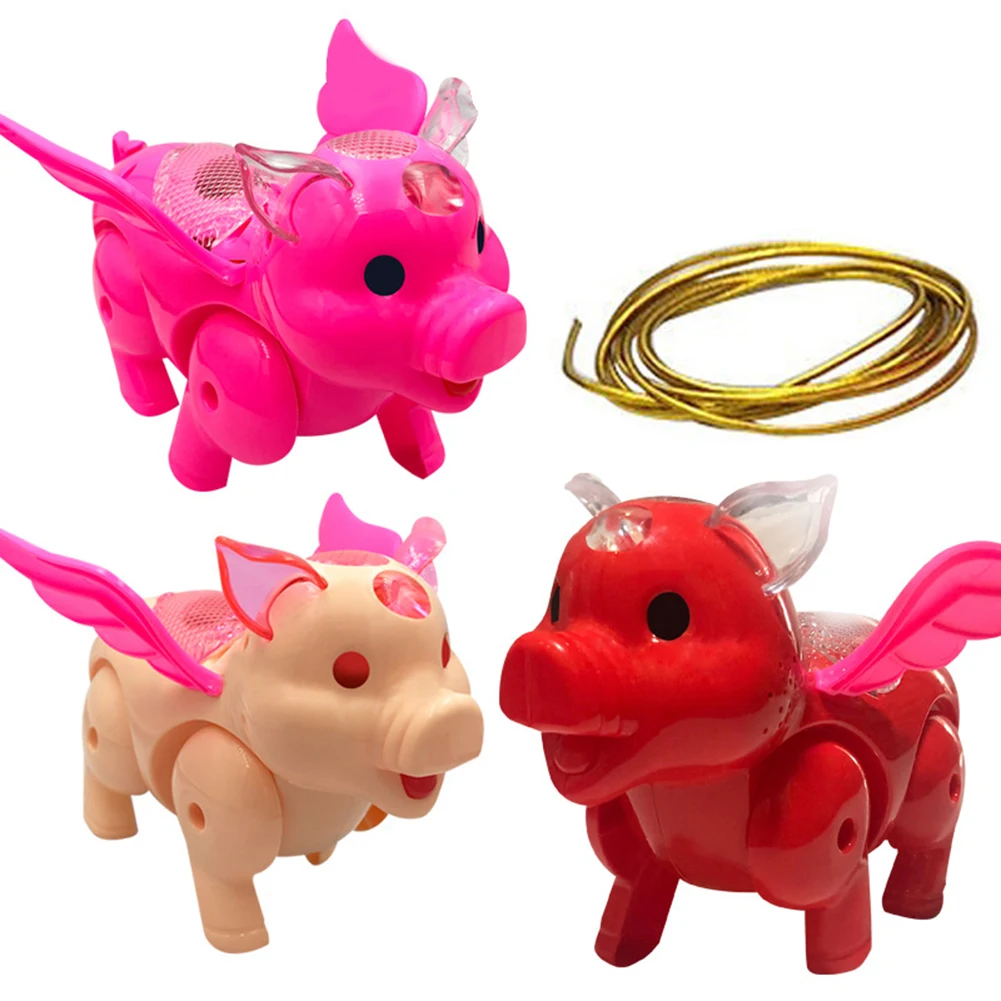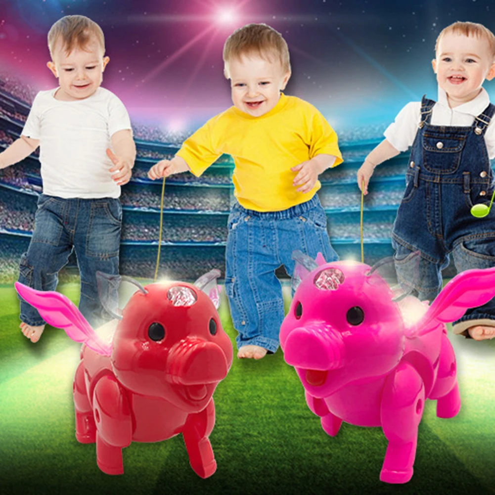 Электрический светодиодный музыкальный крыло свинья ходячие животные с поводком дети интерактивная игрушка