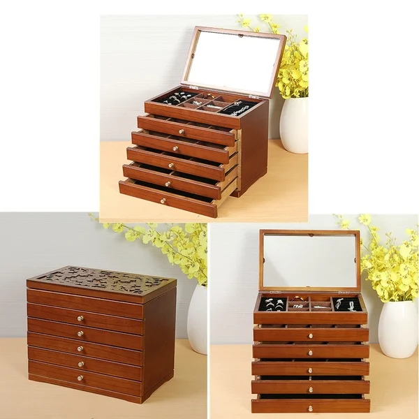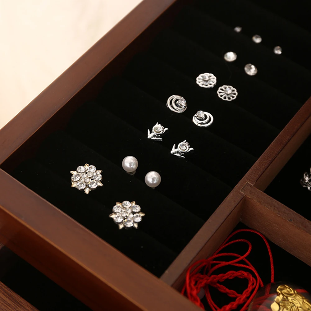 2/4 слоев Ретро деревянное кольцо для ящика серьги шкатулка макияж Чехол Органайзер
