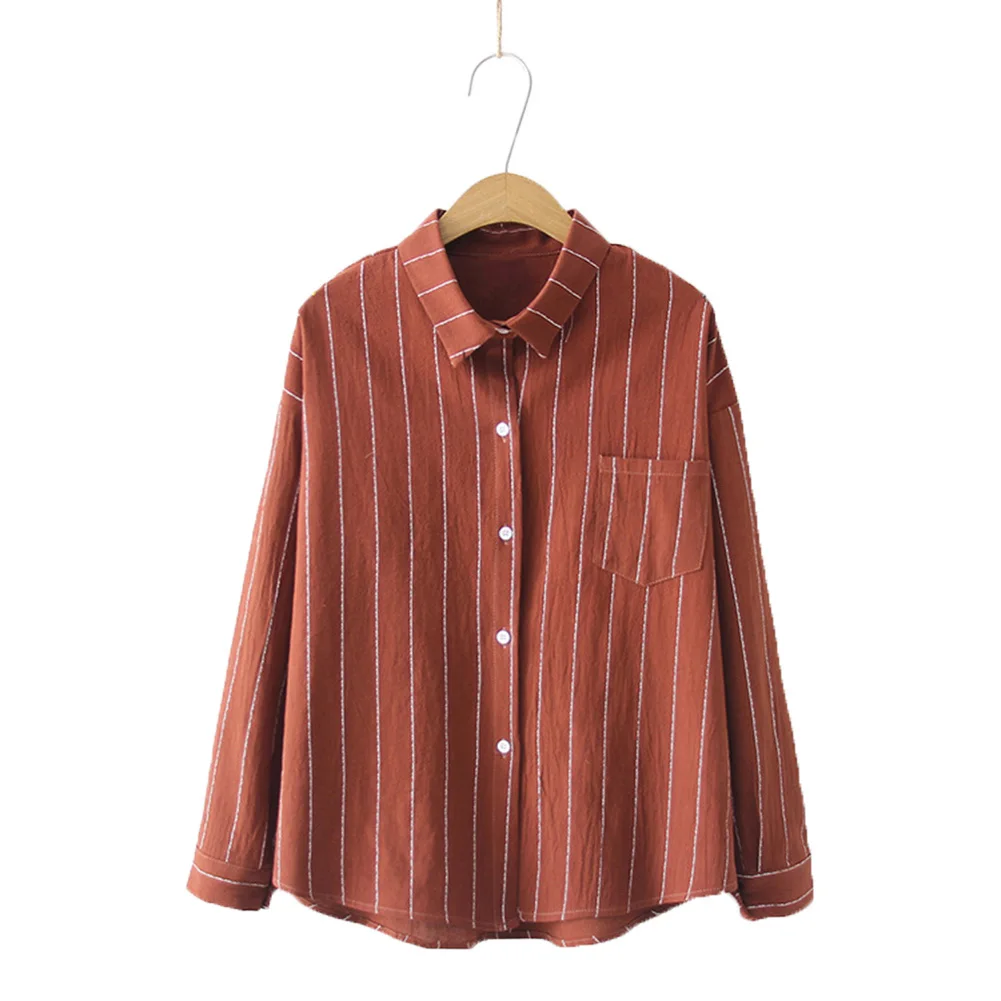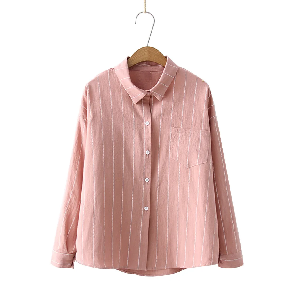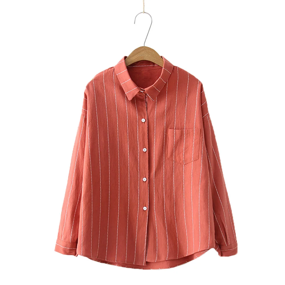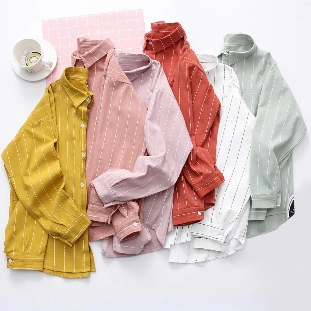 Женская свободная рубашка в Вертикальную Полоску с отложным воротником и длинными рукавами на пуговицах; Сезон весна-осень