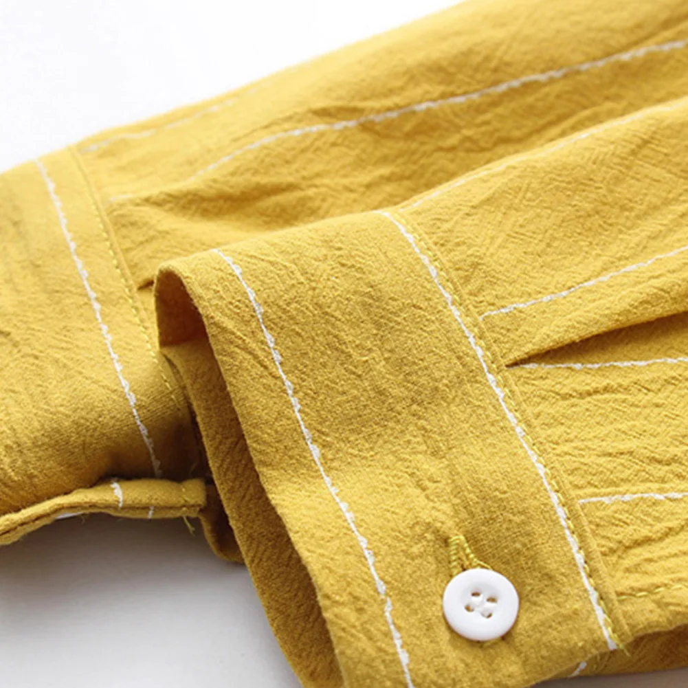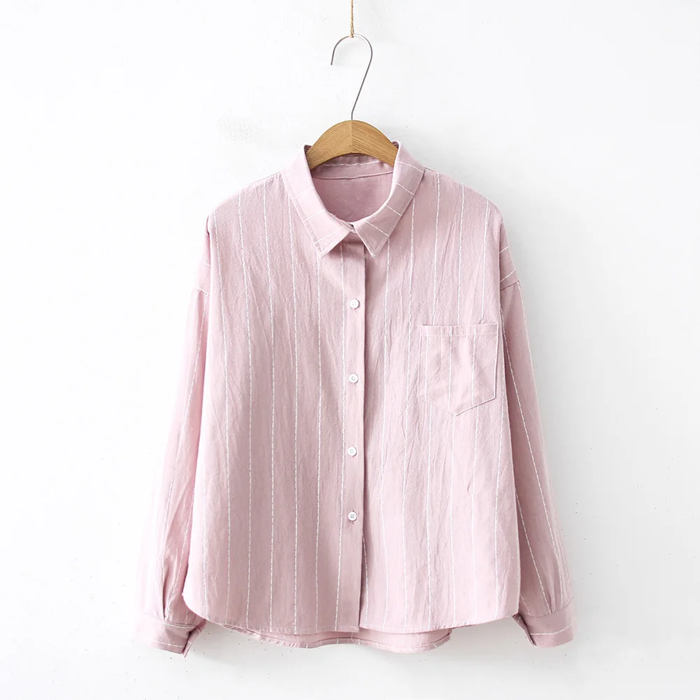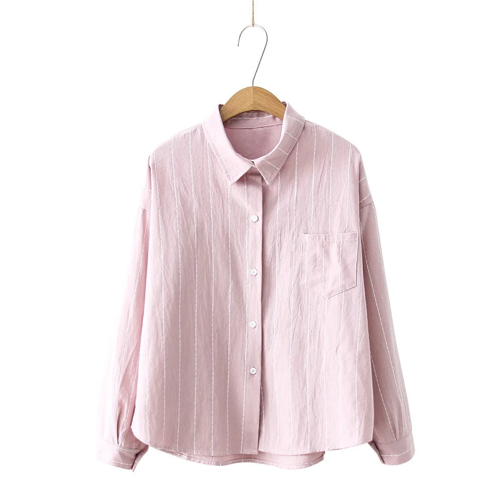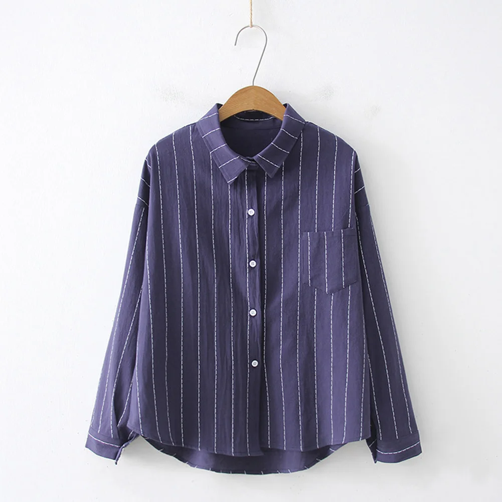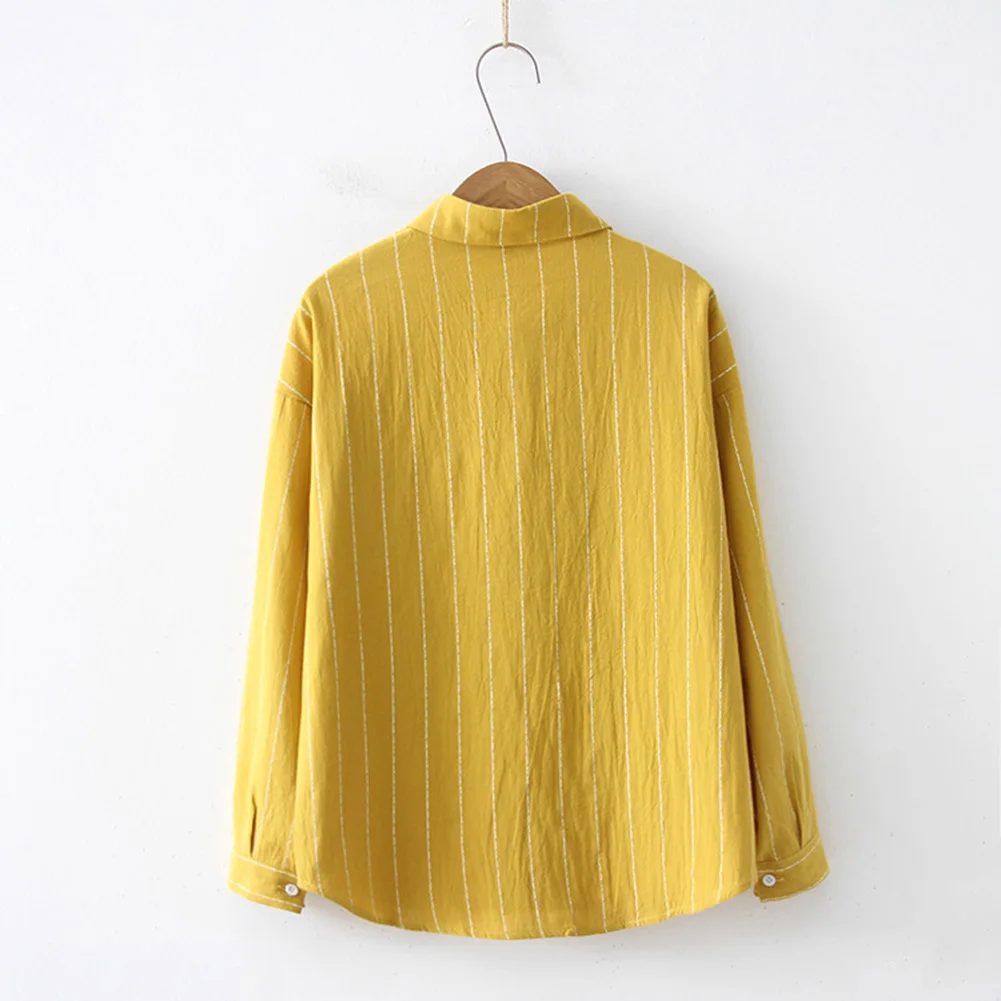 Женская свободная рубашка в Вертикальную Полоску с отложным воротником и длинными рукавами на пуговицах; Сезон весна-осень