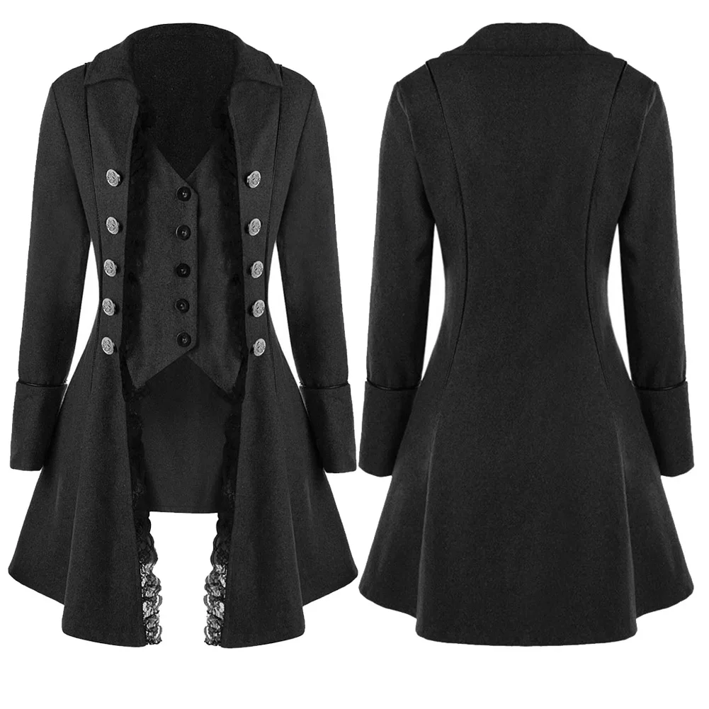 Женский Ретро кружевной длинный рукав пуговица фрак вечерний костюм средневековое пальто куртка