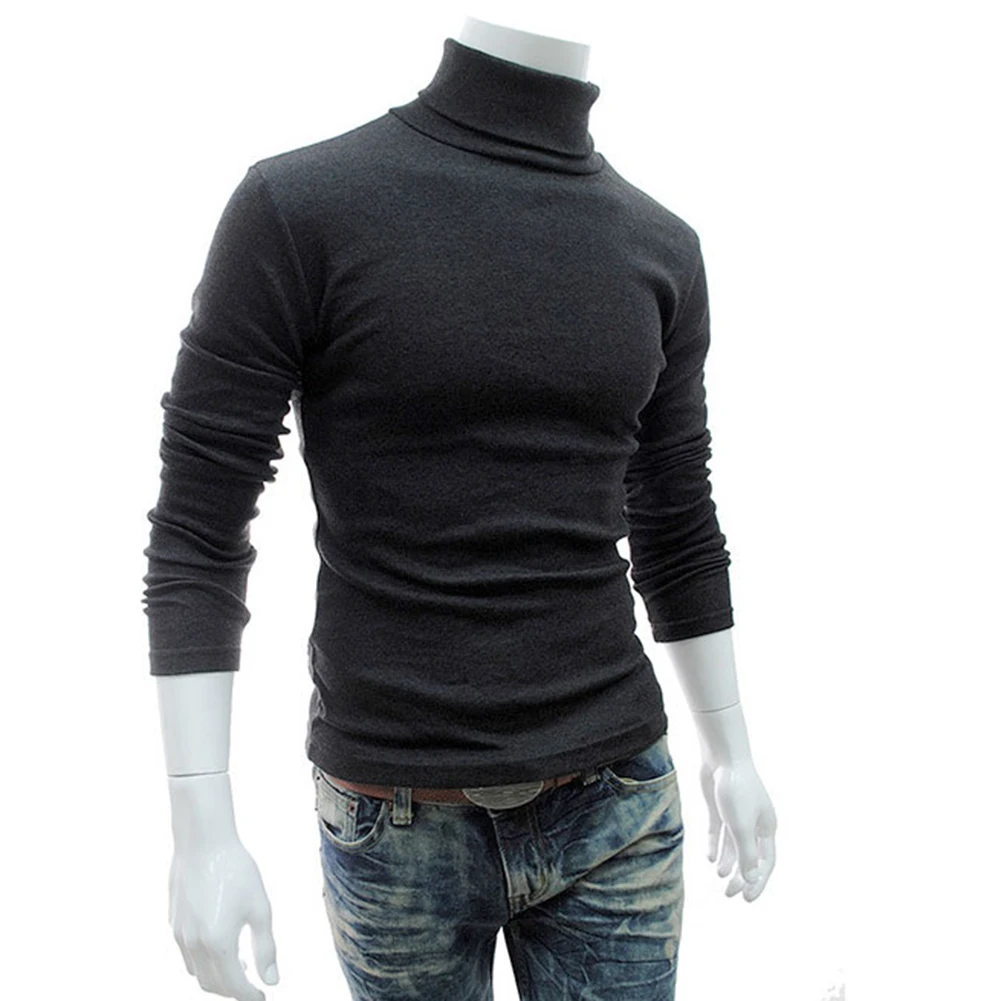 Мужской осенне-зимний однотонный хлопковый пуловер с высоким воротником, тонкая приталенная рубашка