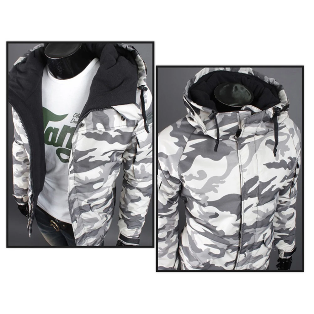 Модная зимняя теплая мужская куртка, пальто, утолщенная камуфляжная куртка с карманами, на молнии, с длинным рукавом, пальто для мужчин, одежда