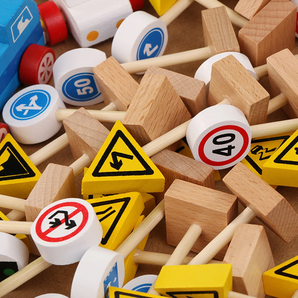 Деревянные уличные дорожные знаки, автомобильные блоки, ролевые игры, Обучающие Детские игрушки