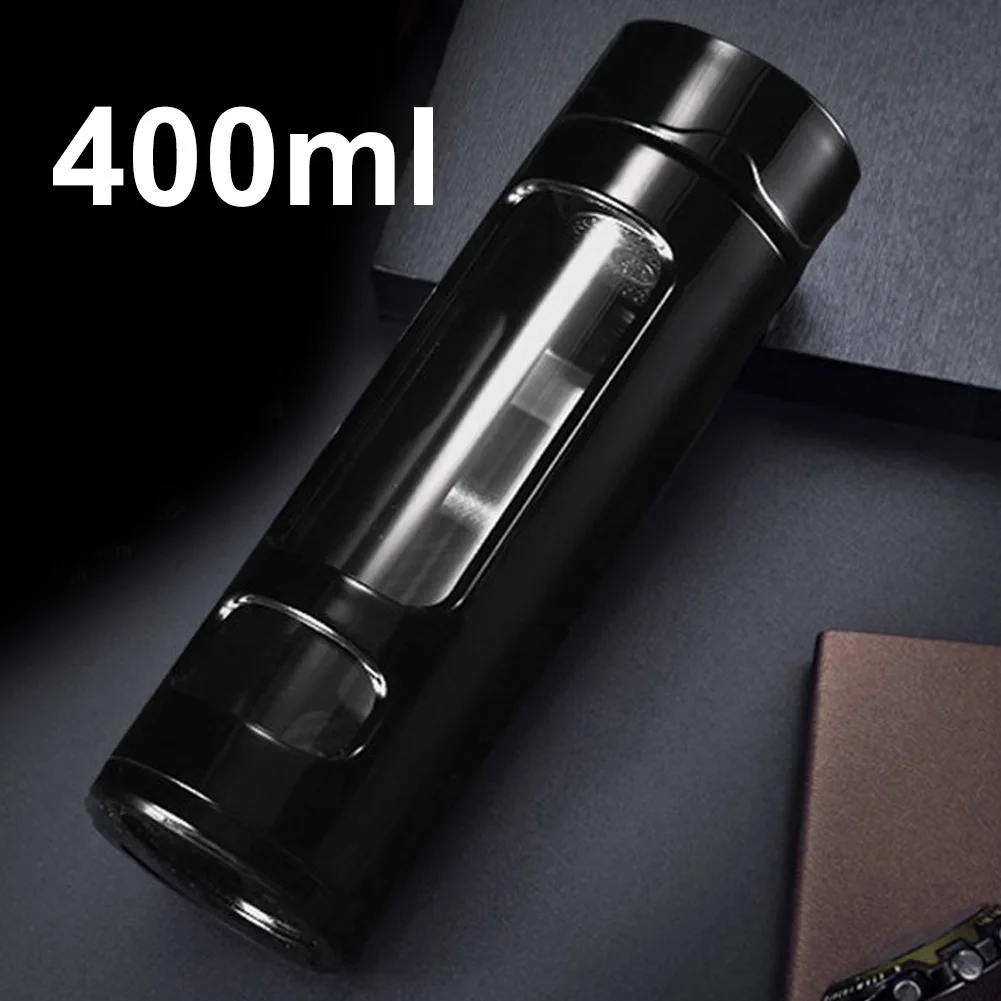 400 мл портативная двухслойная прозрачная стеклянная бутылка для воды с заваркой чая