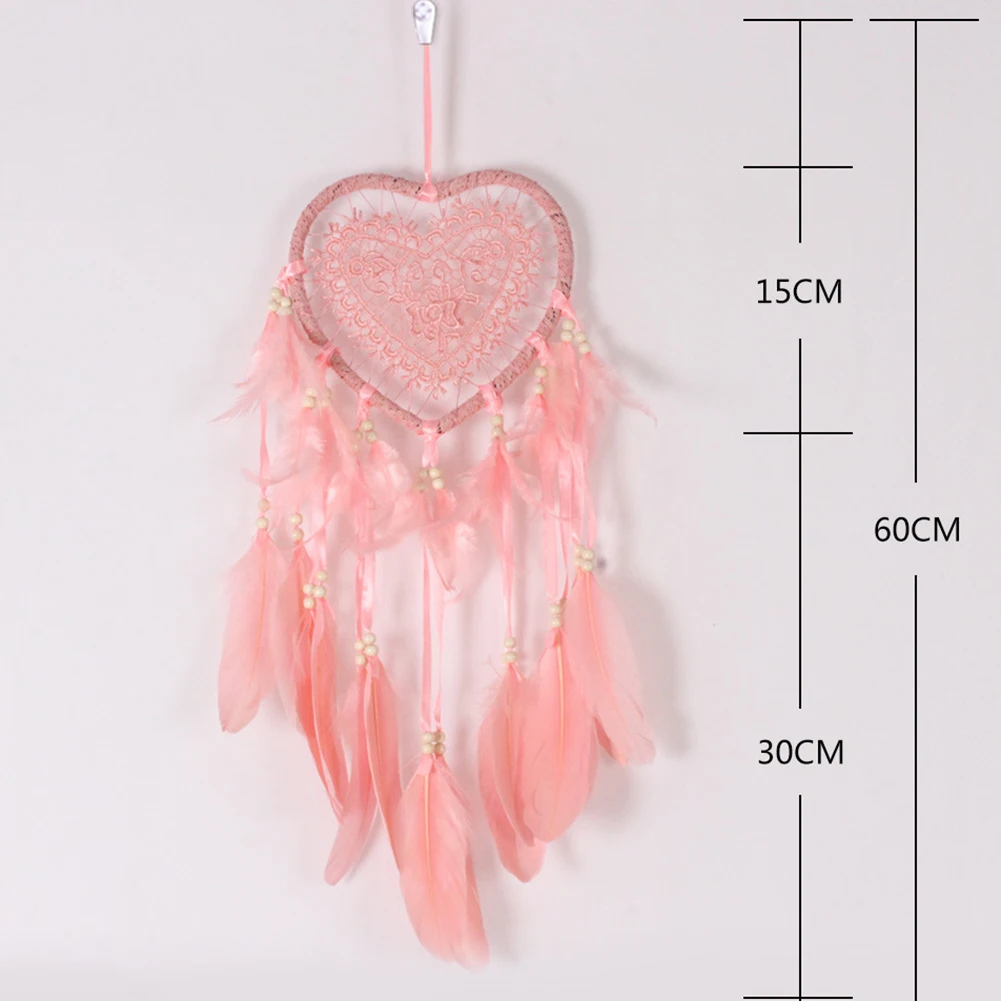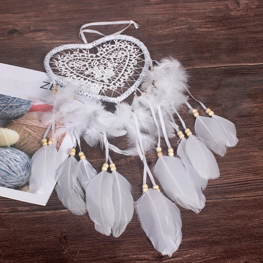 Ловец снов сердце бисер с перьями Настенный декор для девушки комнаты украшение