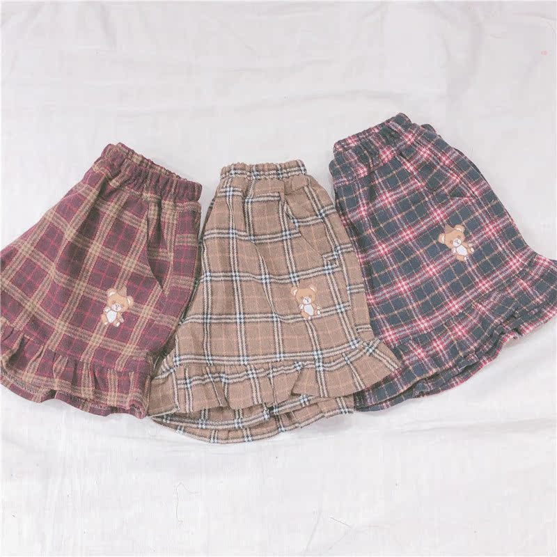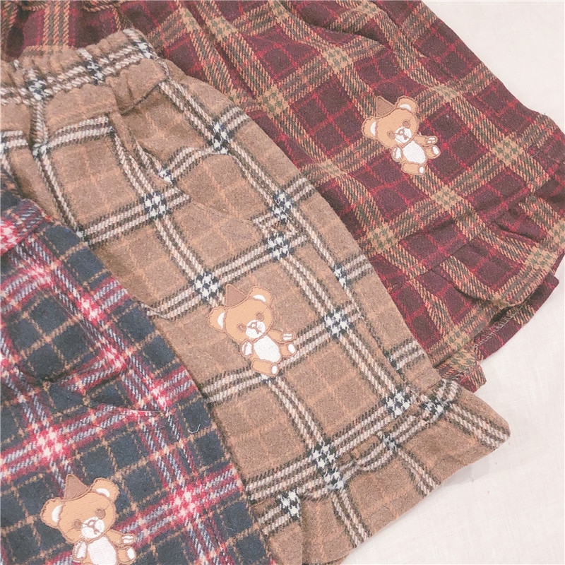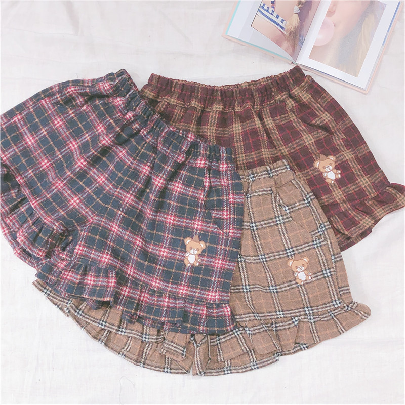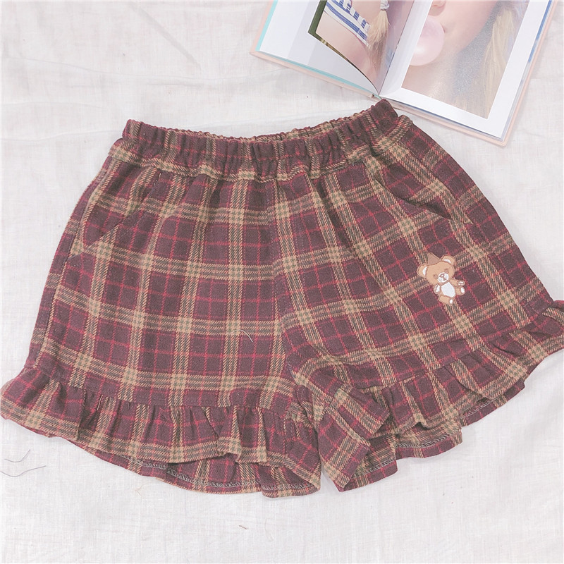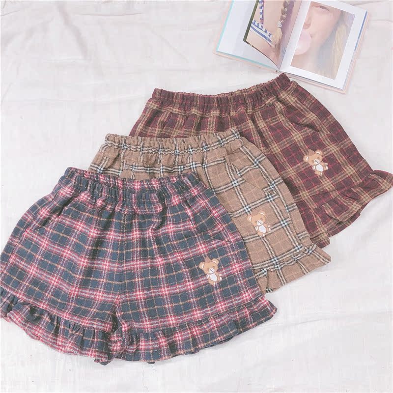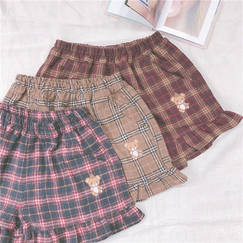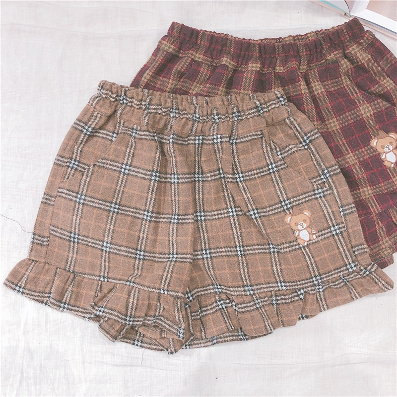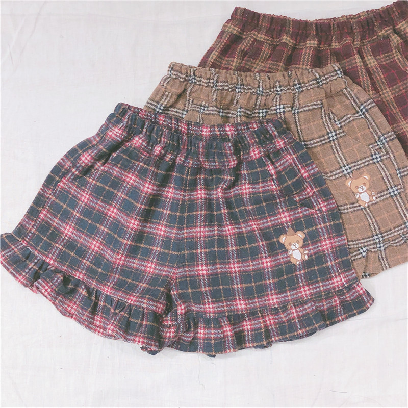 Женские разноцветные сапоги в японском Ретро Клетчатые Шерстяные шорты тонкий мягкий сестра маленькая свежая заплатка "медведь" вышивка шорты опрятный Стиль