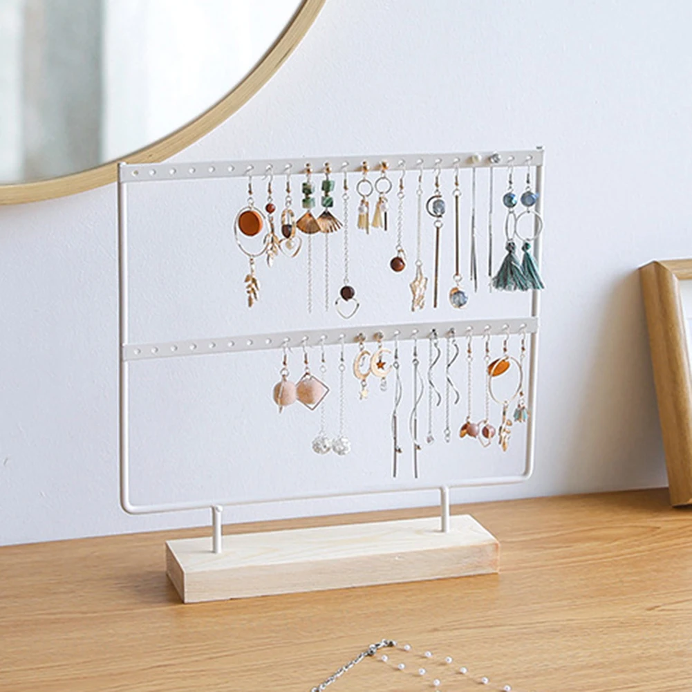 2 слоя деревянные отверстия серьги шпильки ювелирные изделия Дисплей стенд держатель Полка