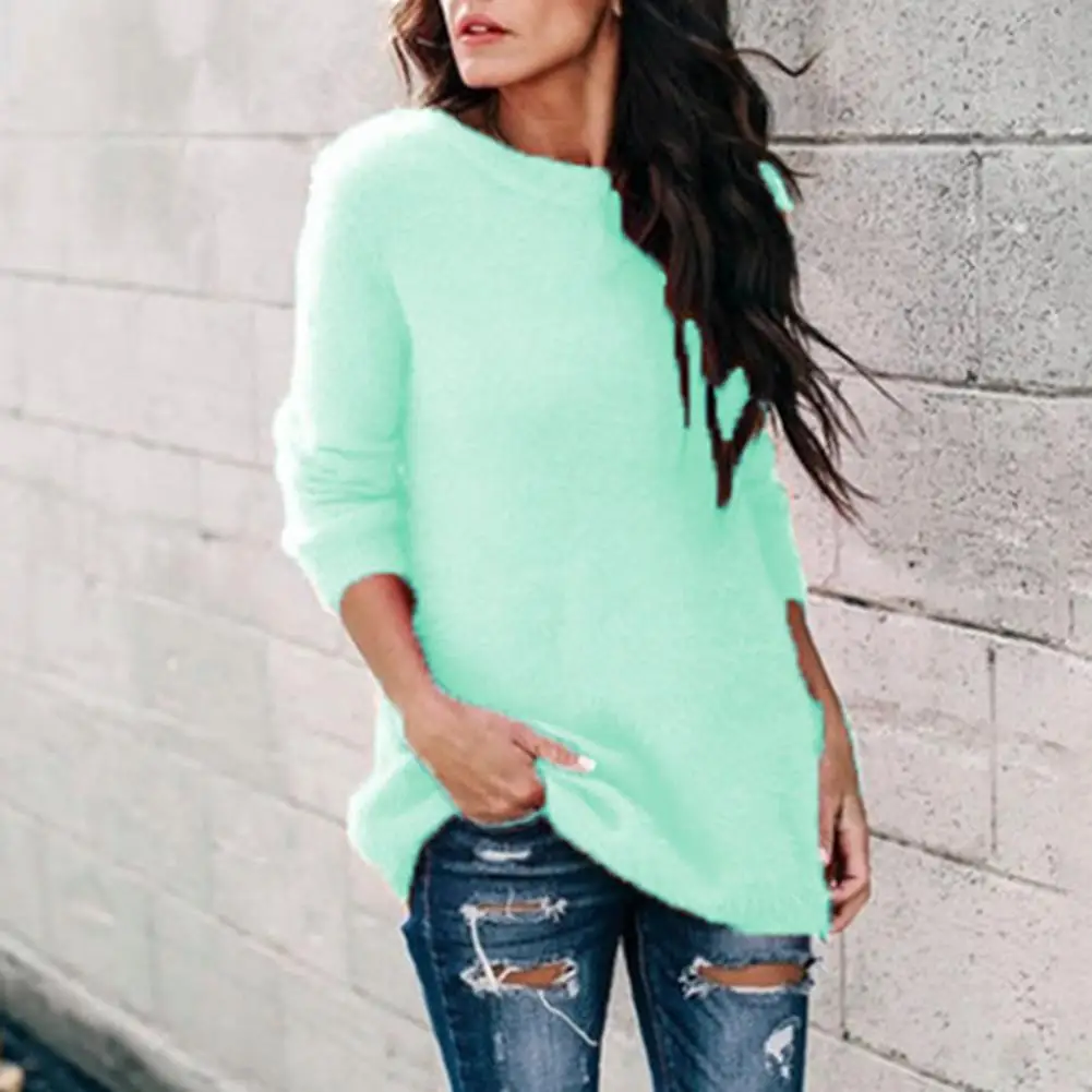Повседневный Женский вязаный пуловер с круглым вырезом и длинным рукавом на осень и зиму