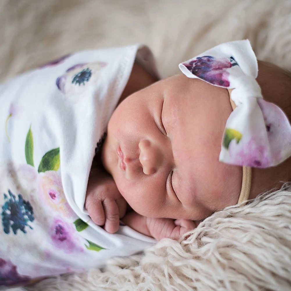 Мягкое цветочное Пеленальное Одеяло для сна для новорожденных, банное полотенце с повязкой на голову