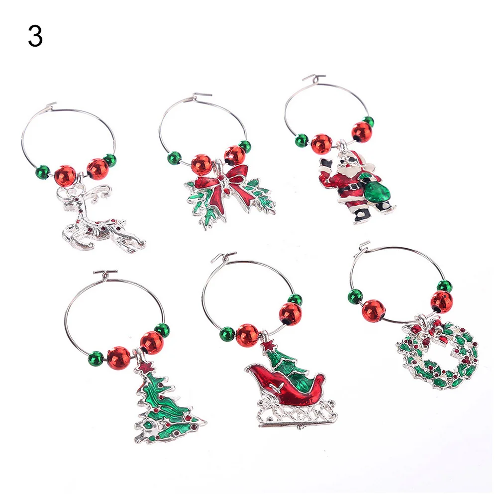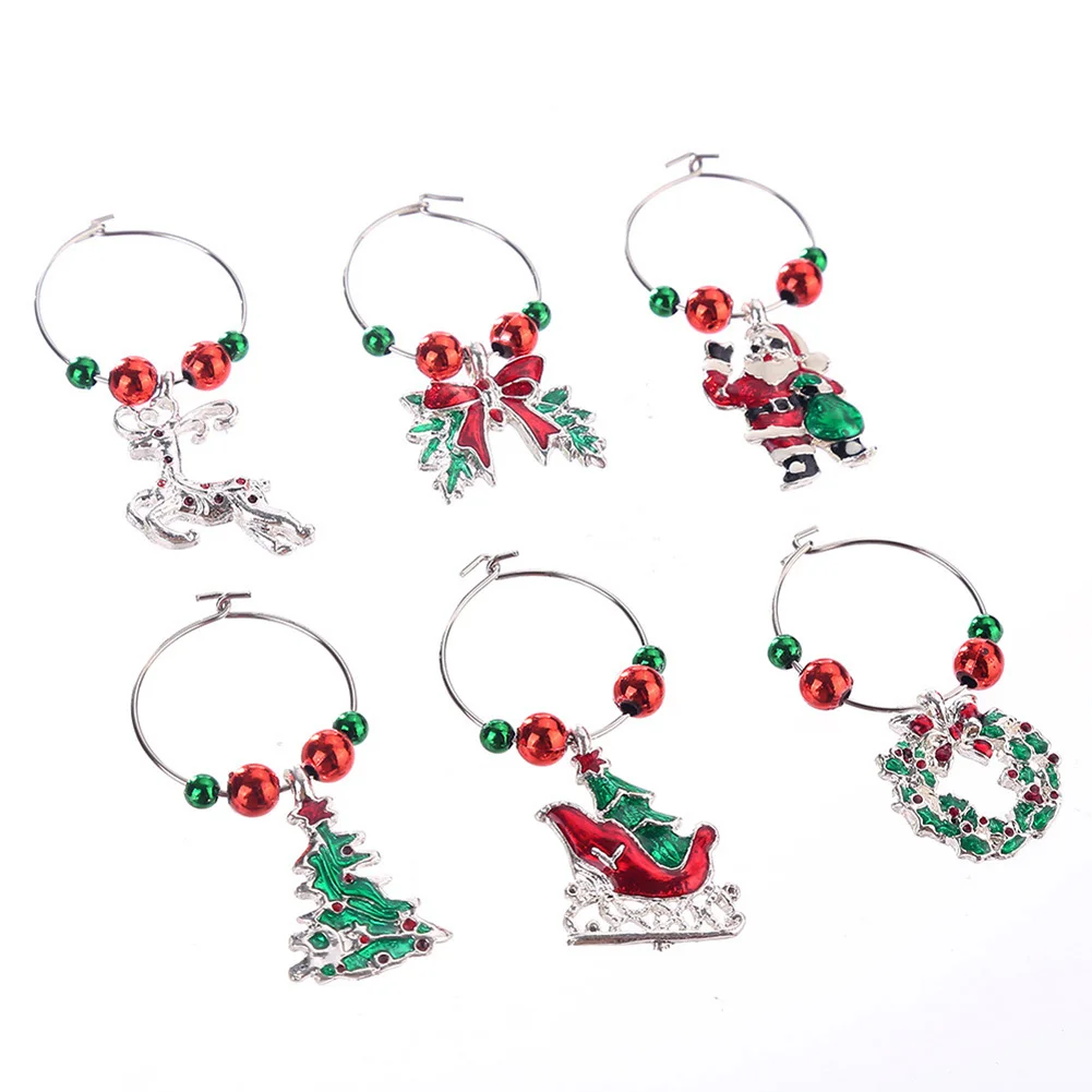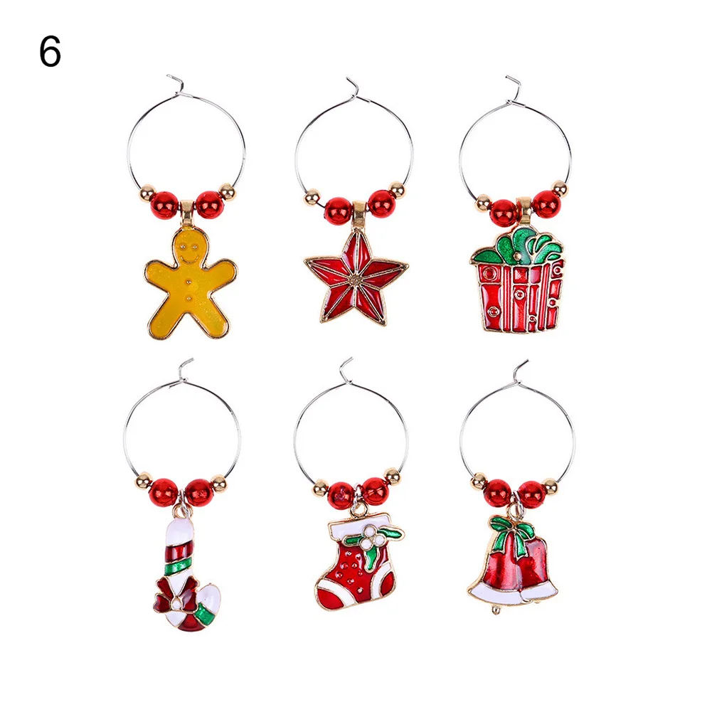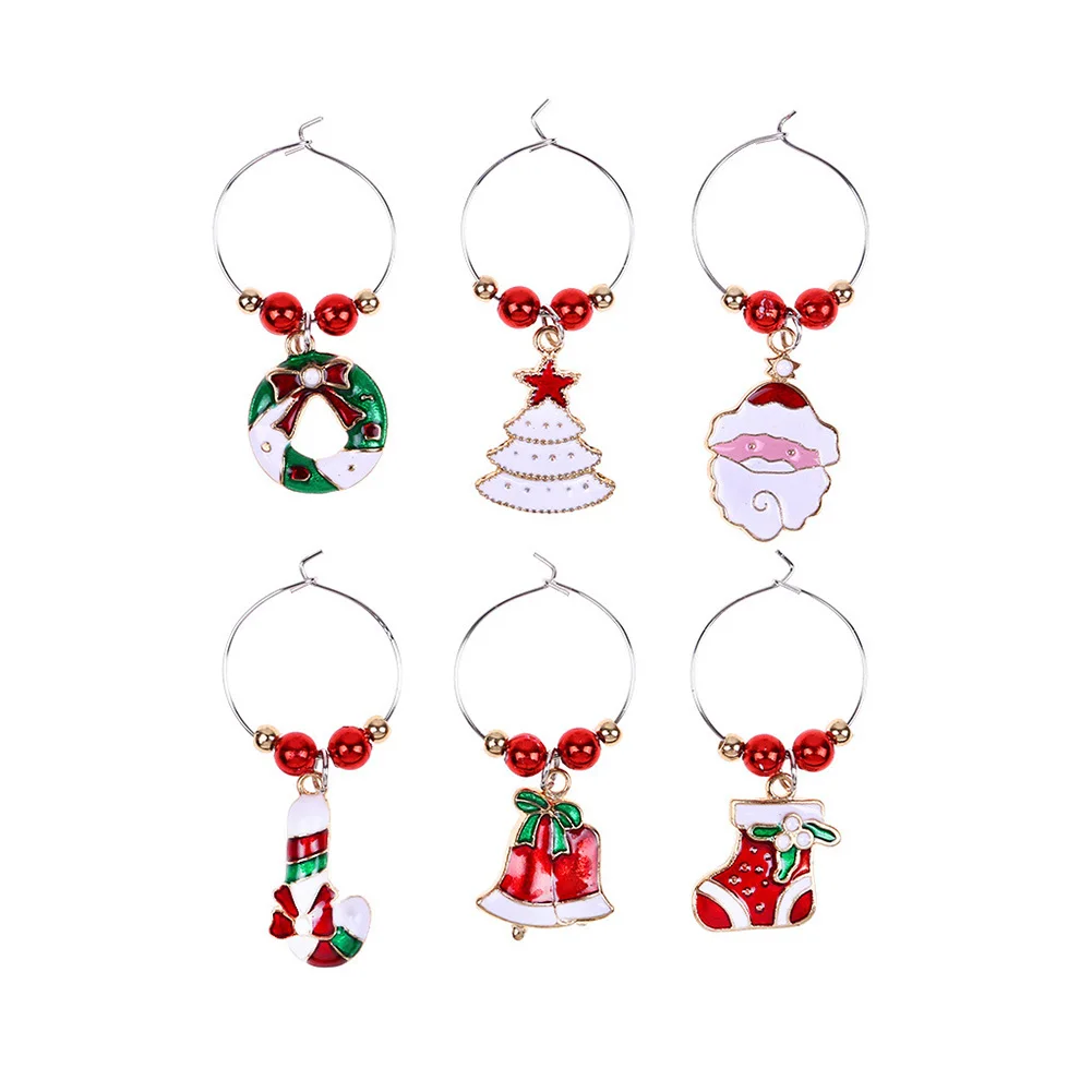6 шт./компл. Рождественский бокал для вина вечерние Новый год Рождество Кубок металлическое Кольцо Кулон Декор