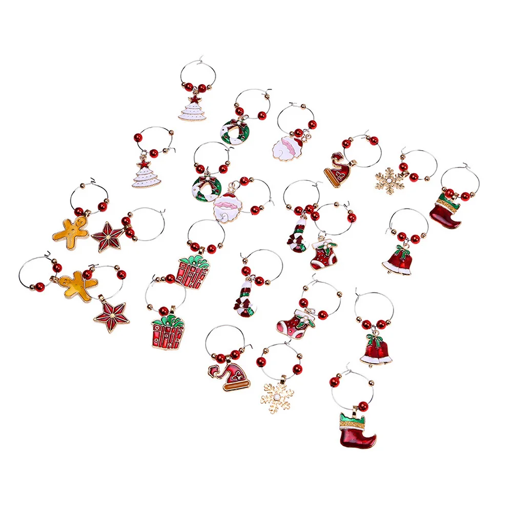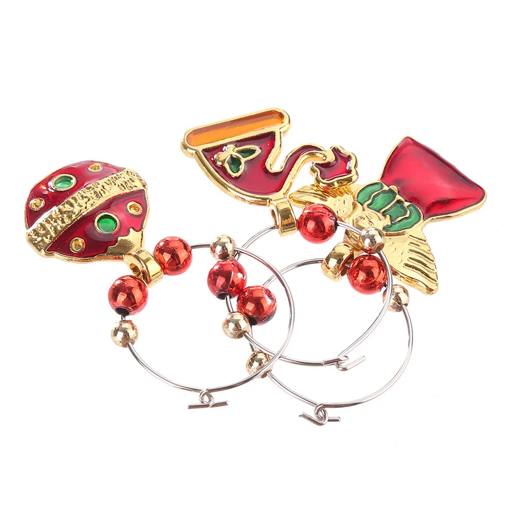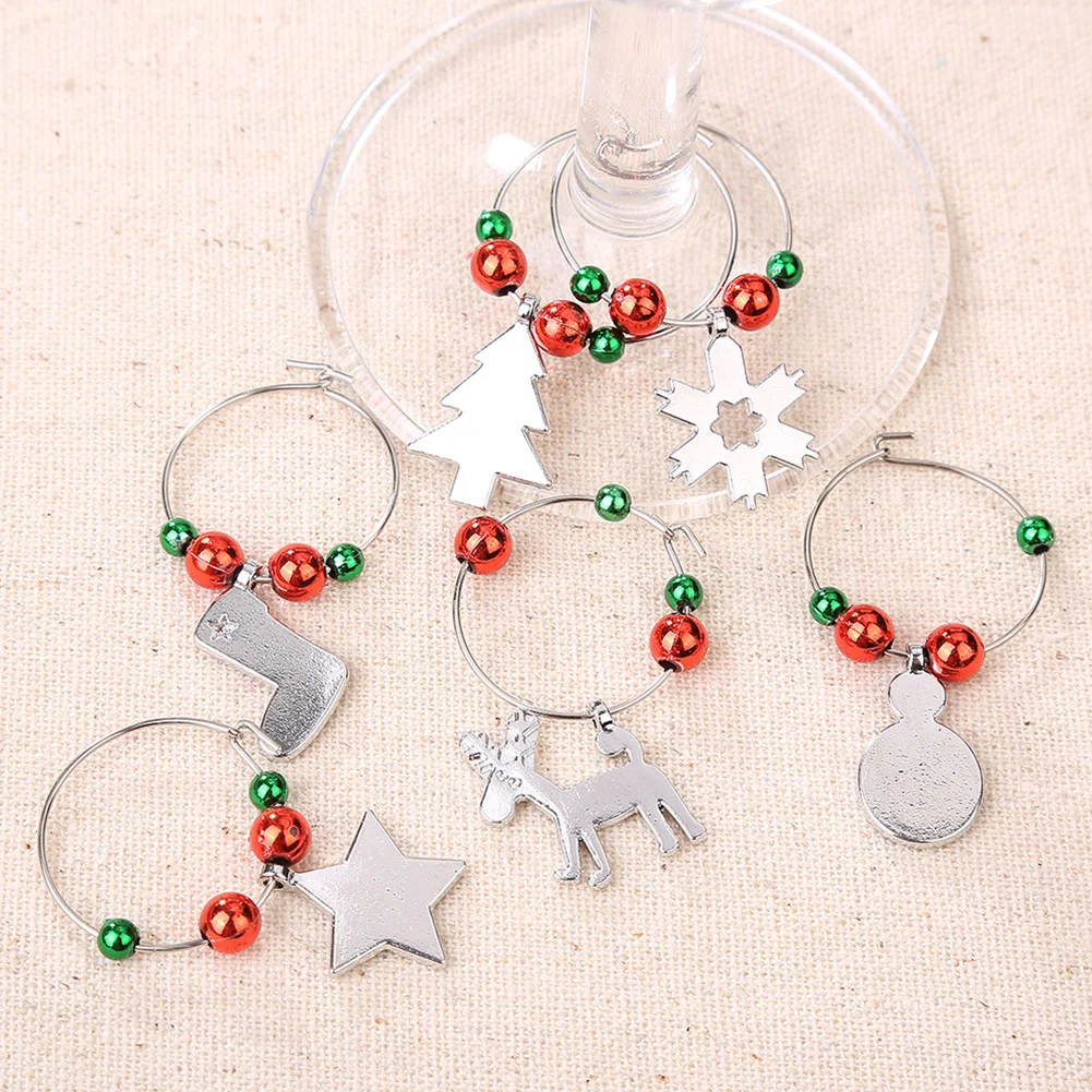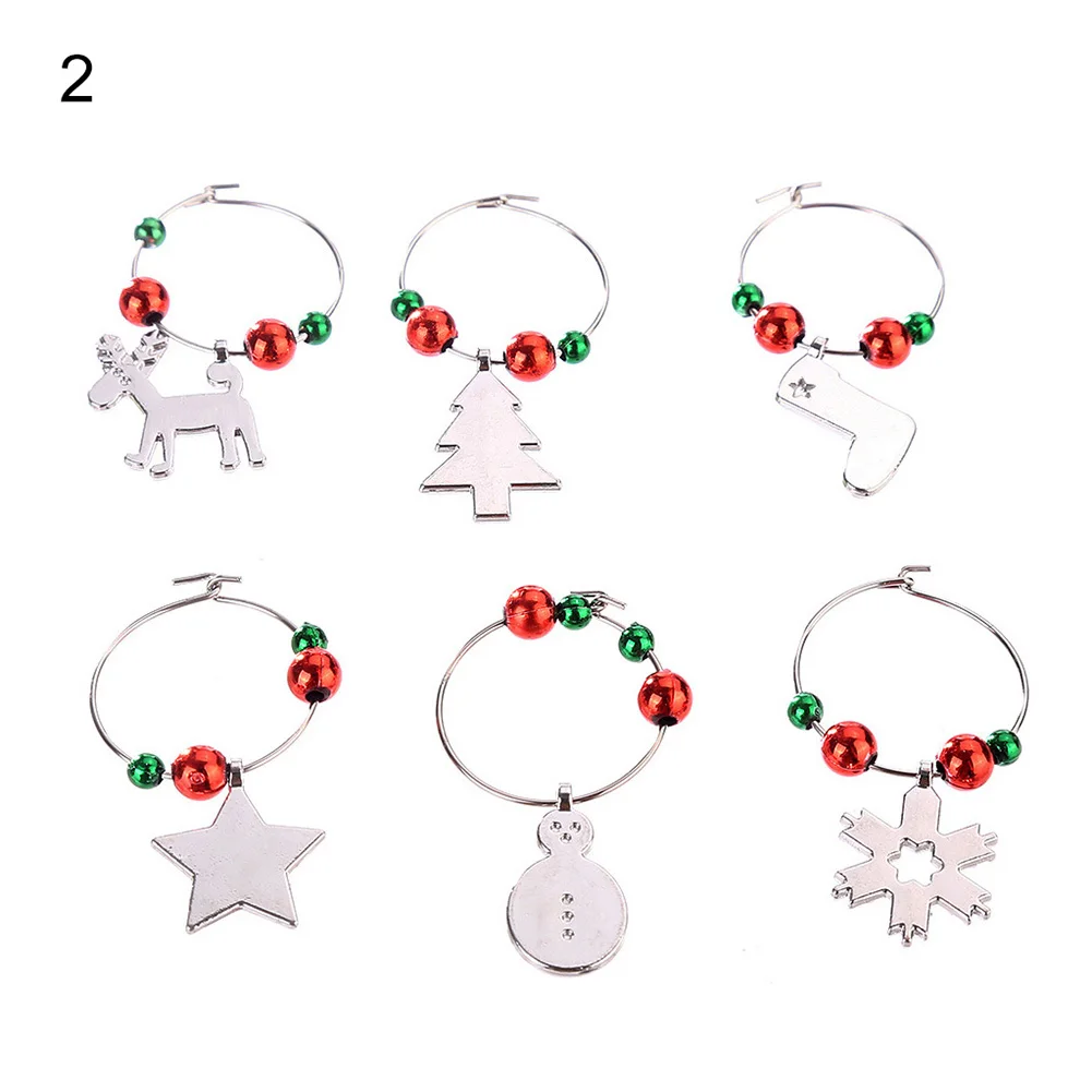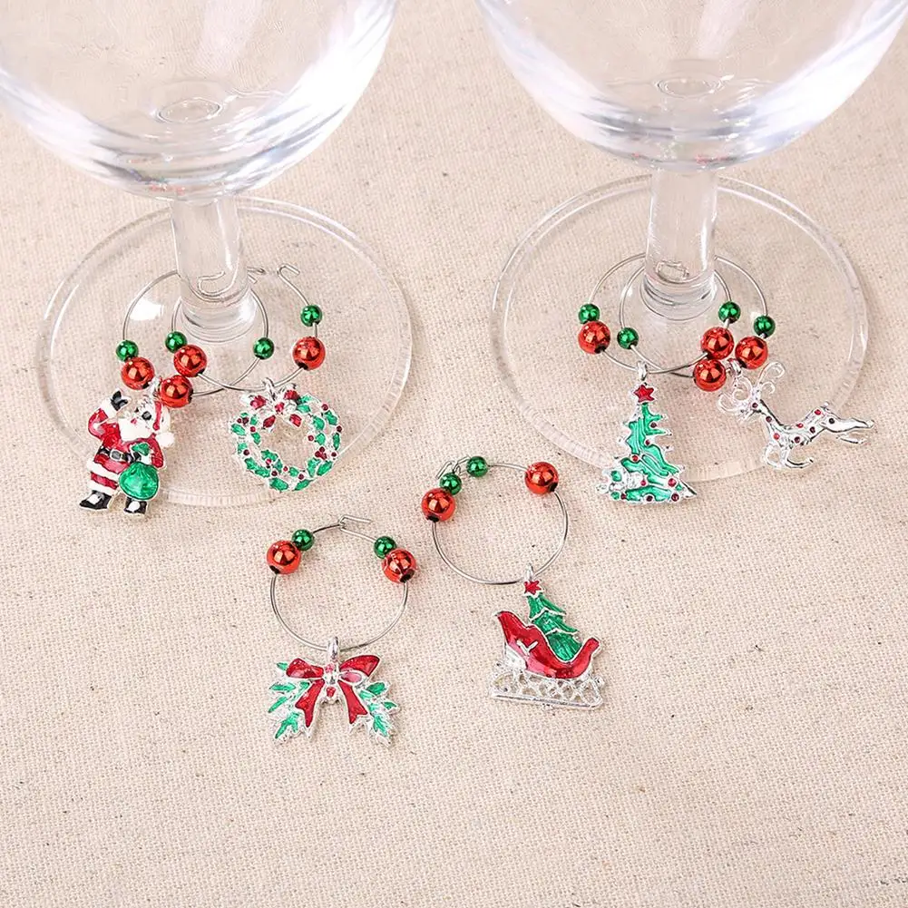 6 шт./компл. Рождественский бокал для вина вечерние Новый год Рождество Кубок металлическое Кольцо Кулон Декор