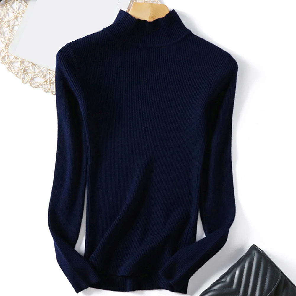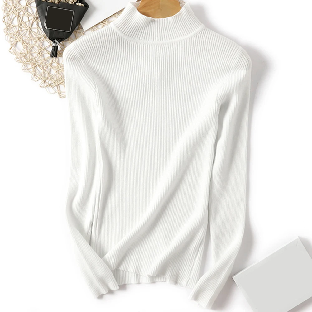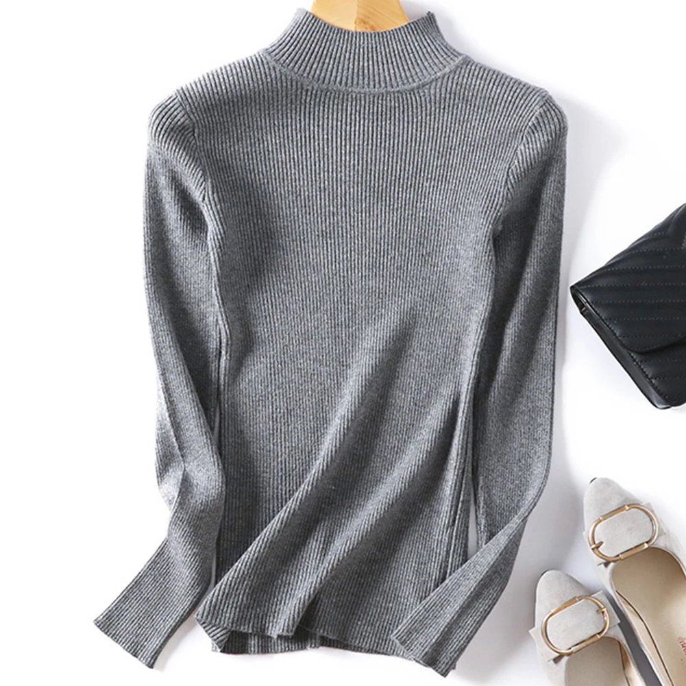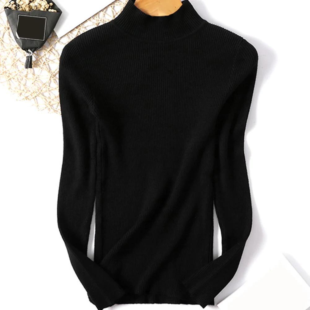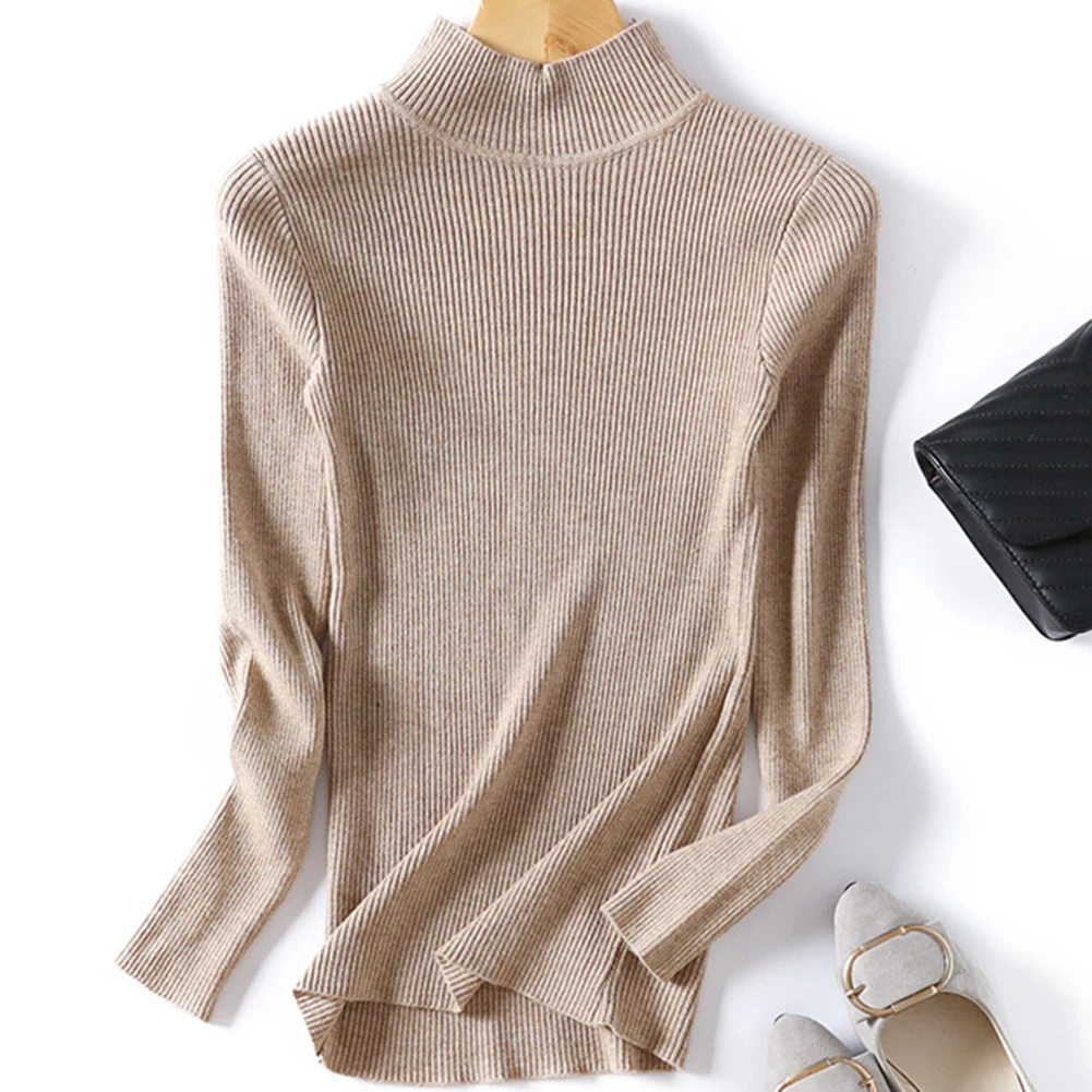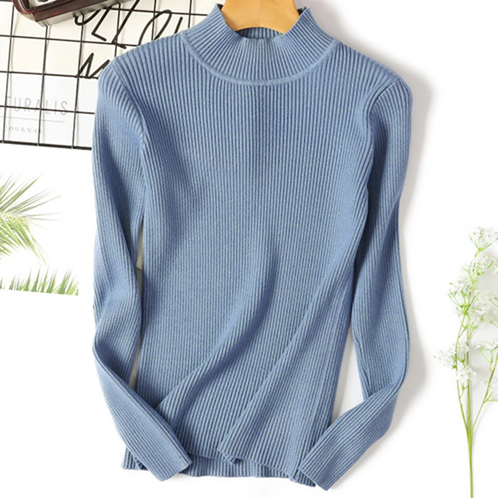 Осенне-зимний женский однотонный облегающий свитер с высоким воротником, вязаный эластичный джемпер
