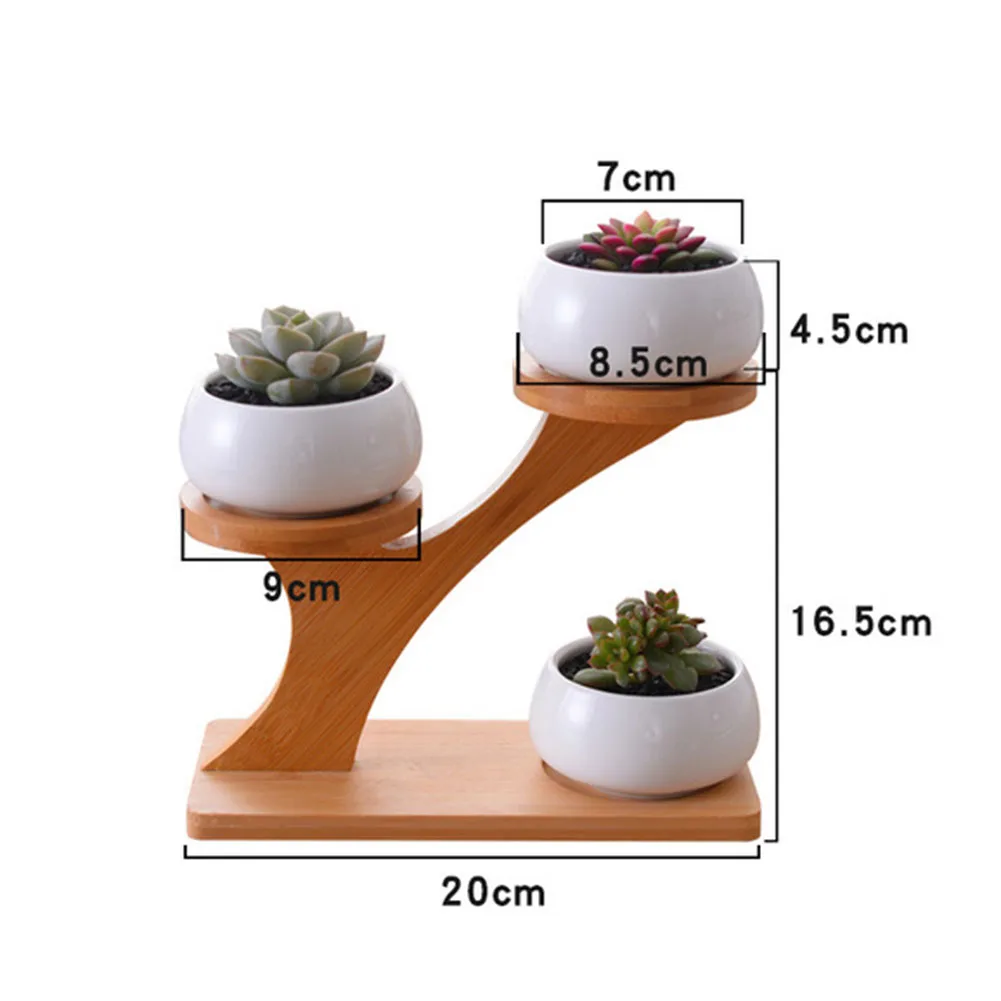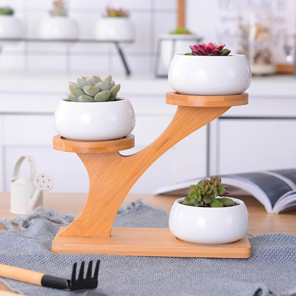 Керамический суккулентный цветочный горшок держатель для плантатора бамбуковая полка Настольный Декор