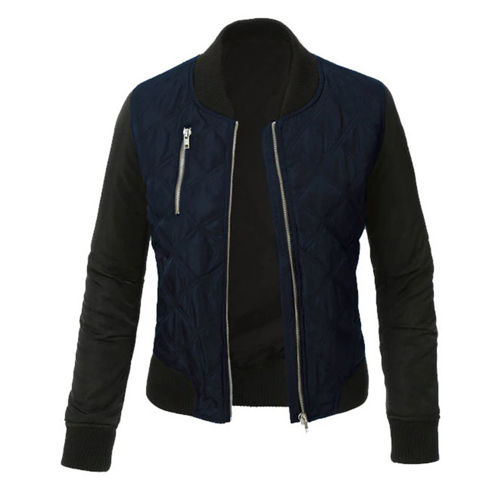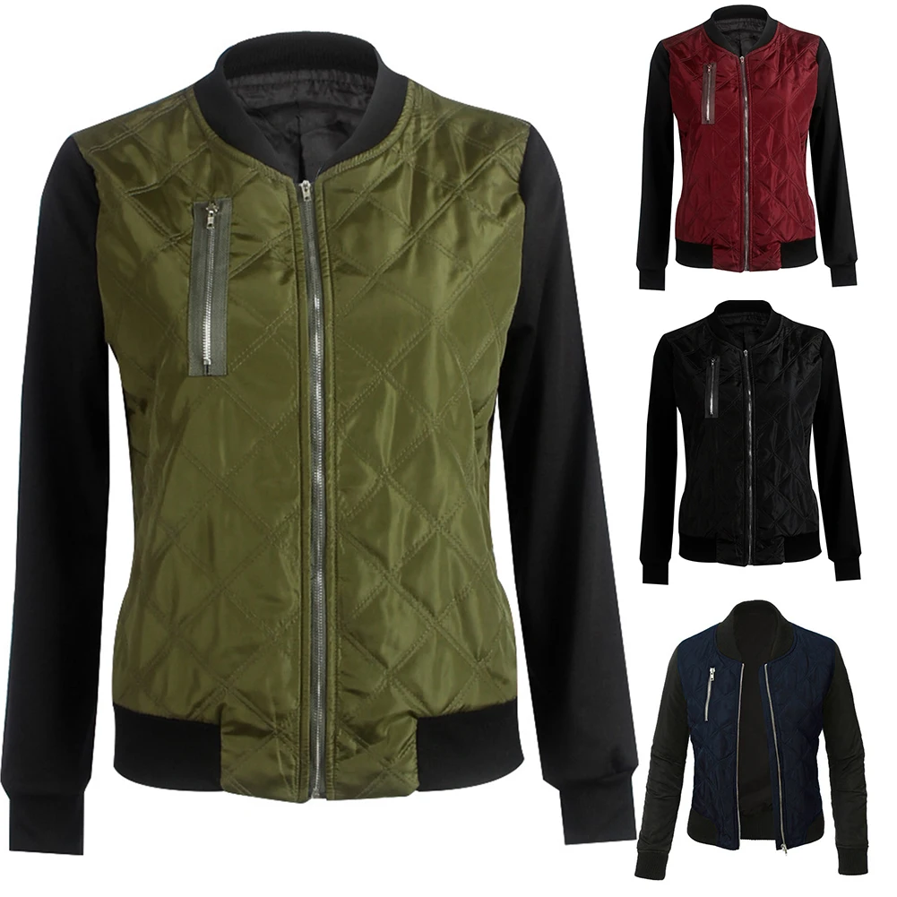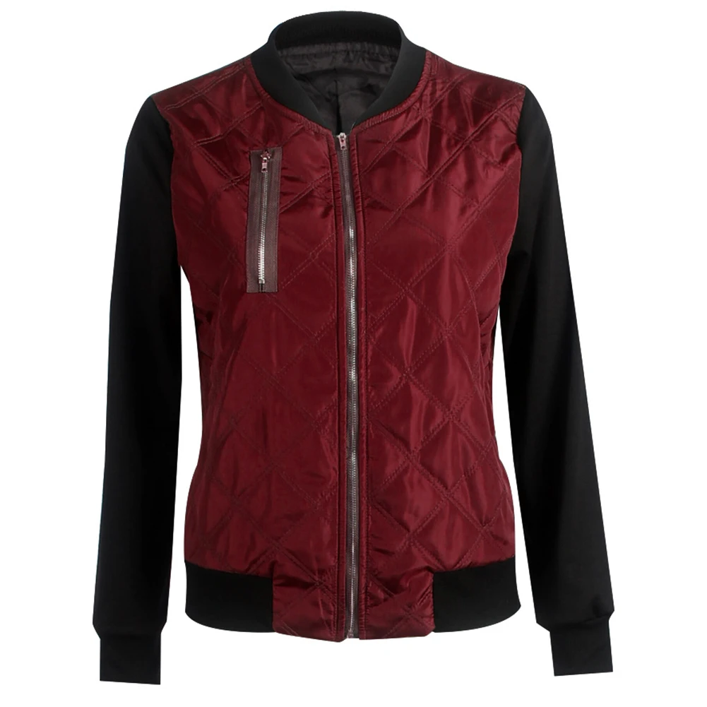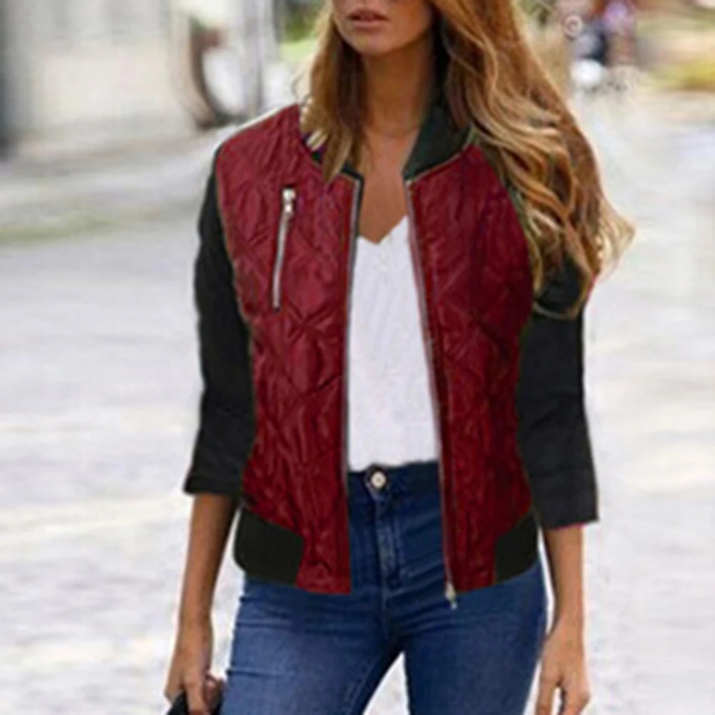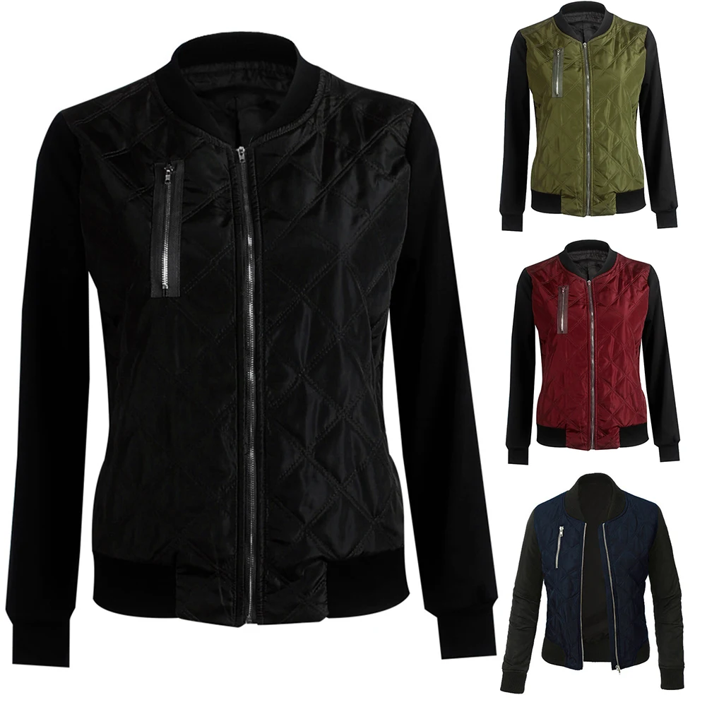 Байкерская женская зимняя куртка с цветным блоком, с длинным рукавом, на молнии, пилот, куртка-бомбер