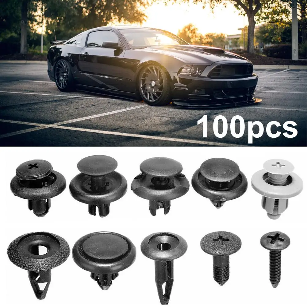 100 шт авто багажник автомобиля винтовые заклепки набор бампер крыло Пластиковые Крепежные Зажимы