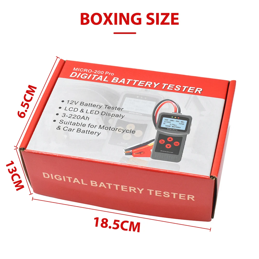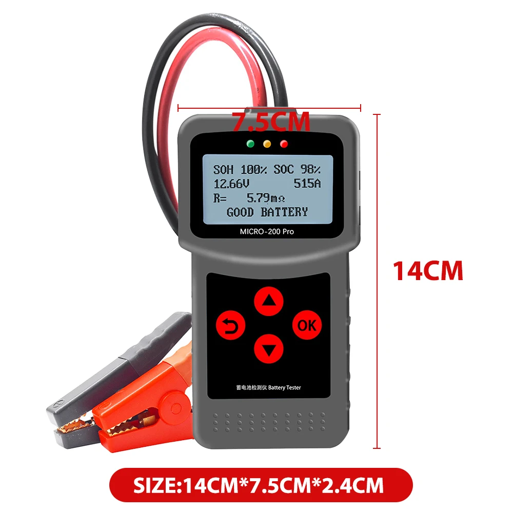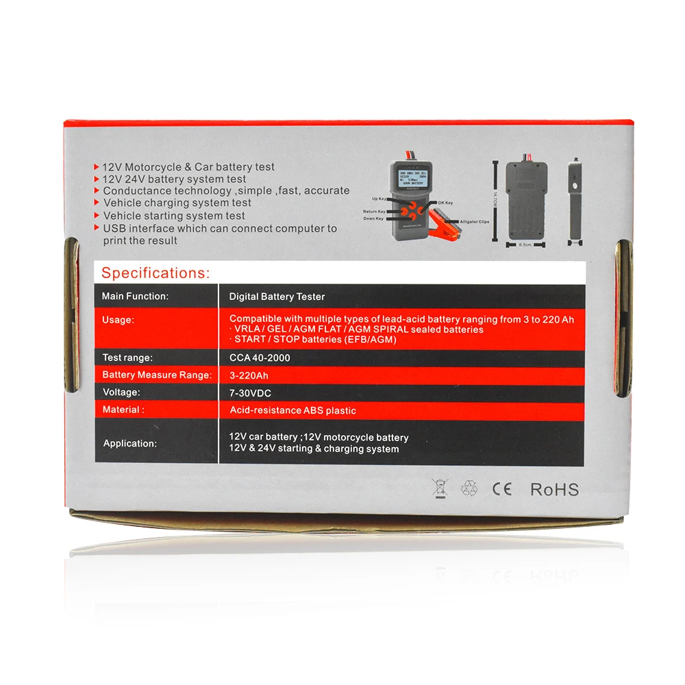 * Многофункциональная Функция: отображение состояния заряда, отображение состояния здоровья, проверка напряжения, проверка емкости CCA & AH, проверка внутреннего сопротивления.