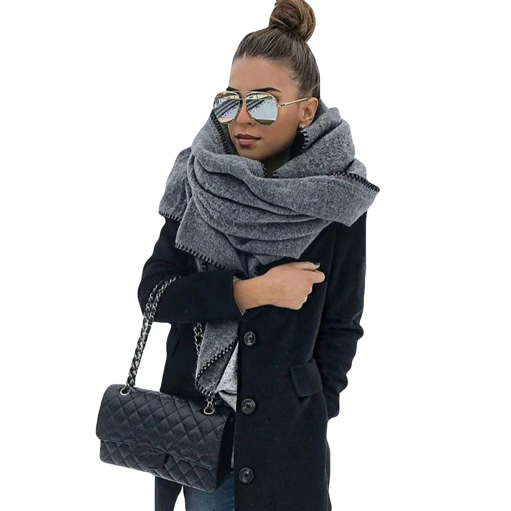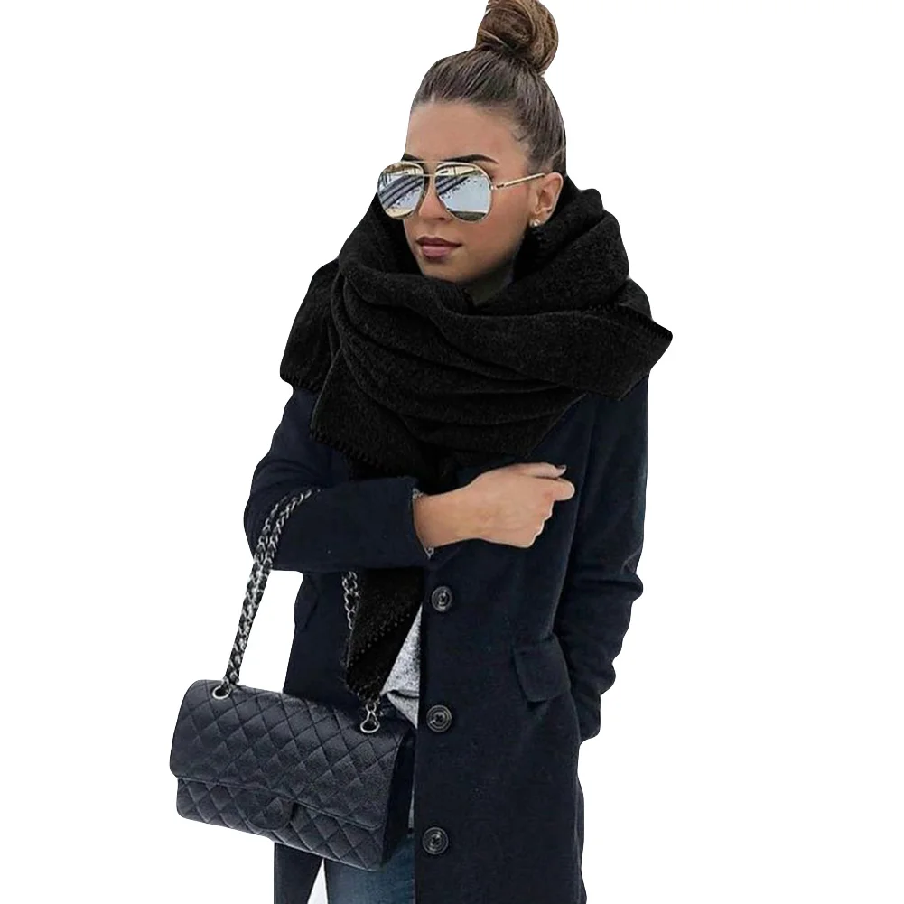 200cm Autumn Winter Women Solid Color Fleece Scarf Warm Shawl Outdoor Neck Wrap