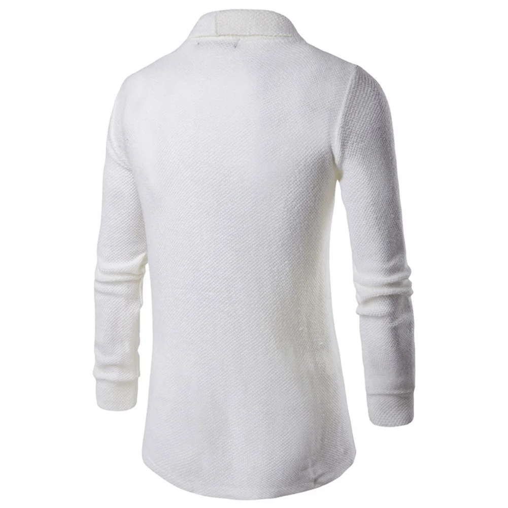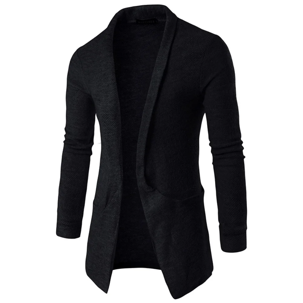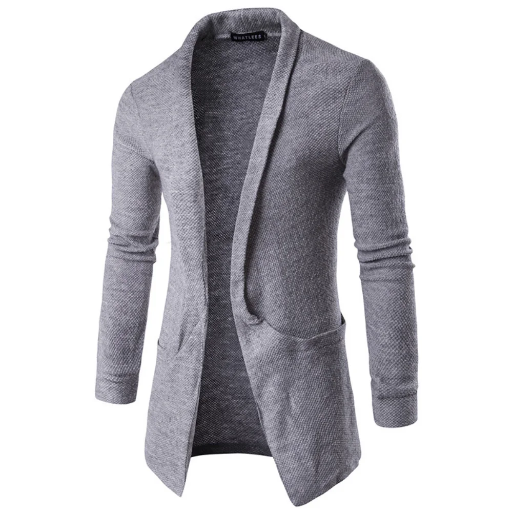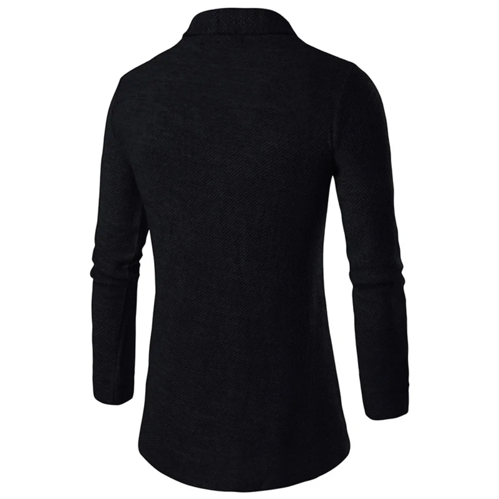 Повседневный мужской Однотонный свитер, кардиган с отложным воротником и карманом, длинная куртка, пальто