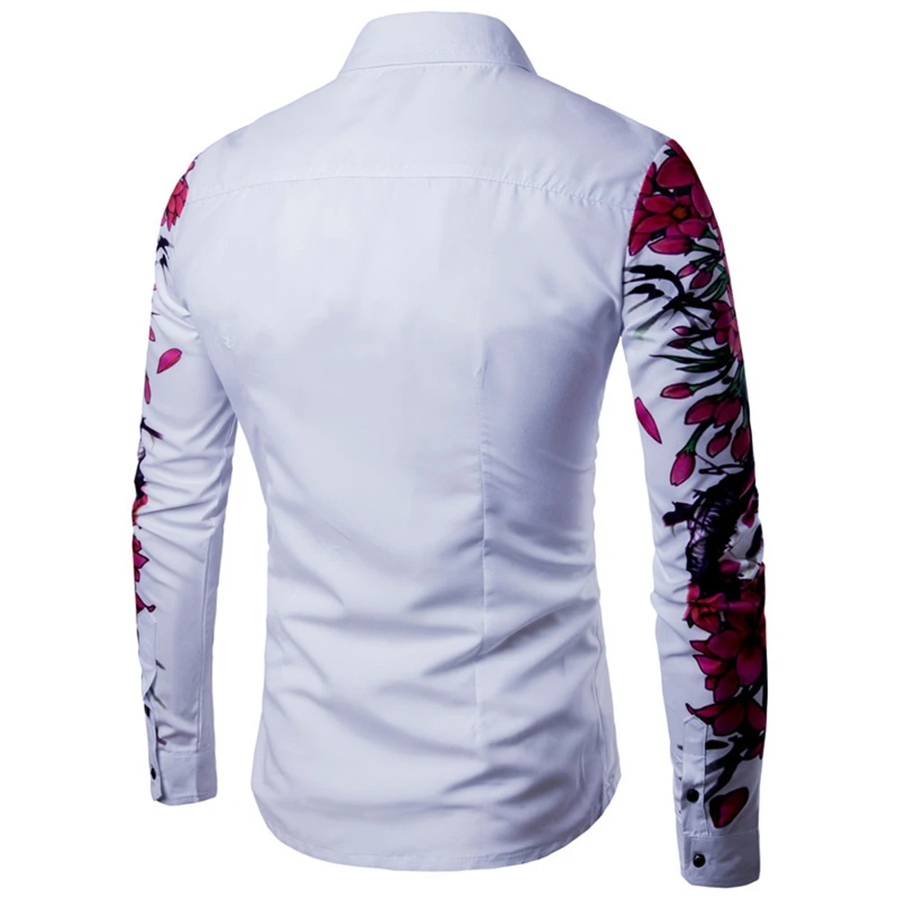 Повседневный мужской однотонный цветочный принт с длинным рукавом на пуговицах Узкая рубашка