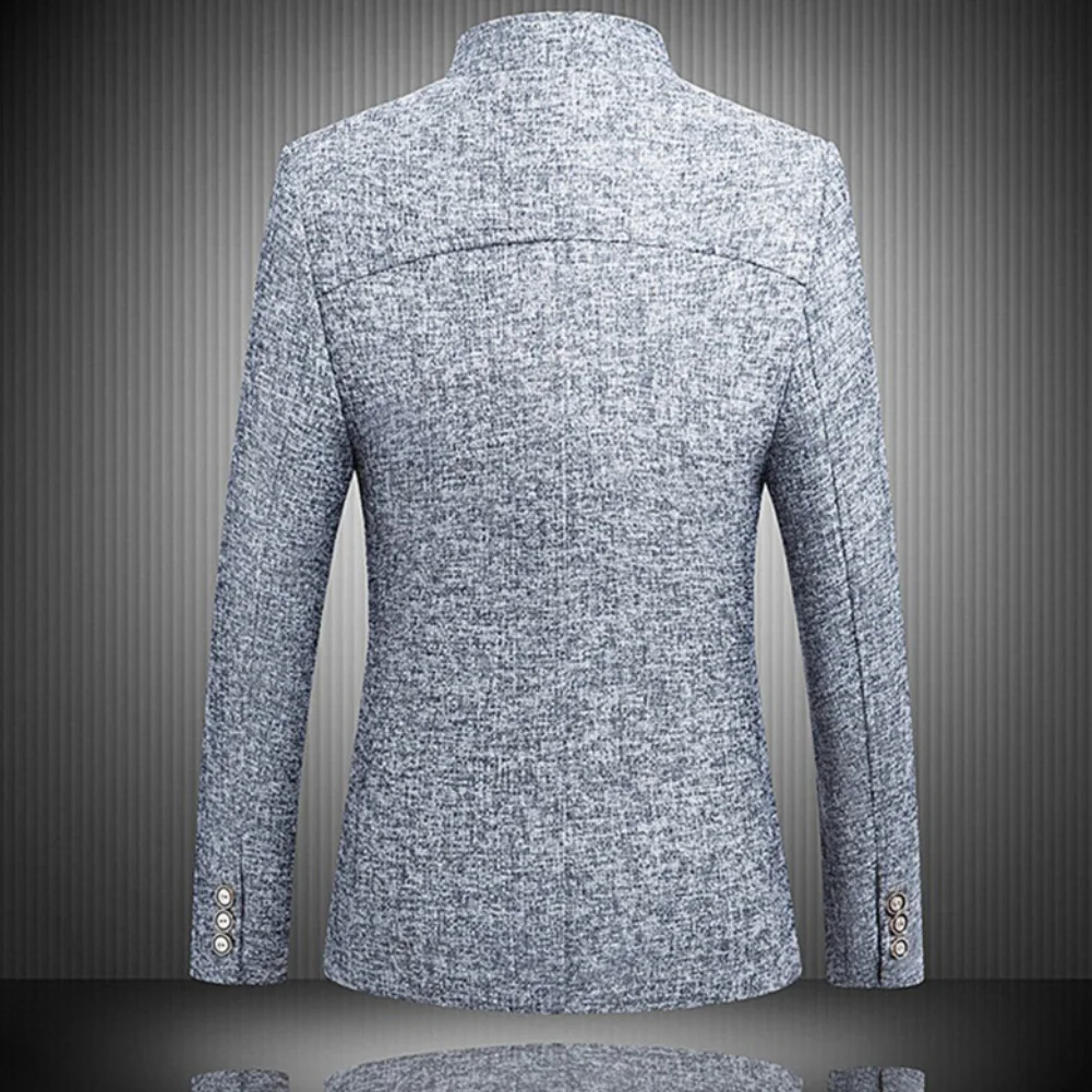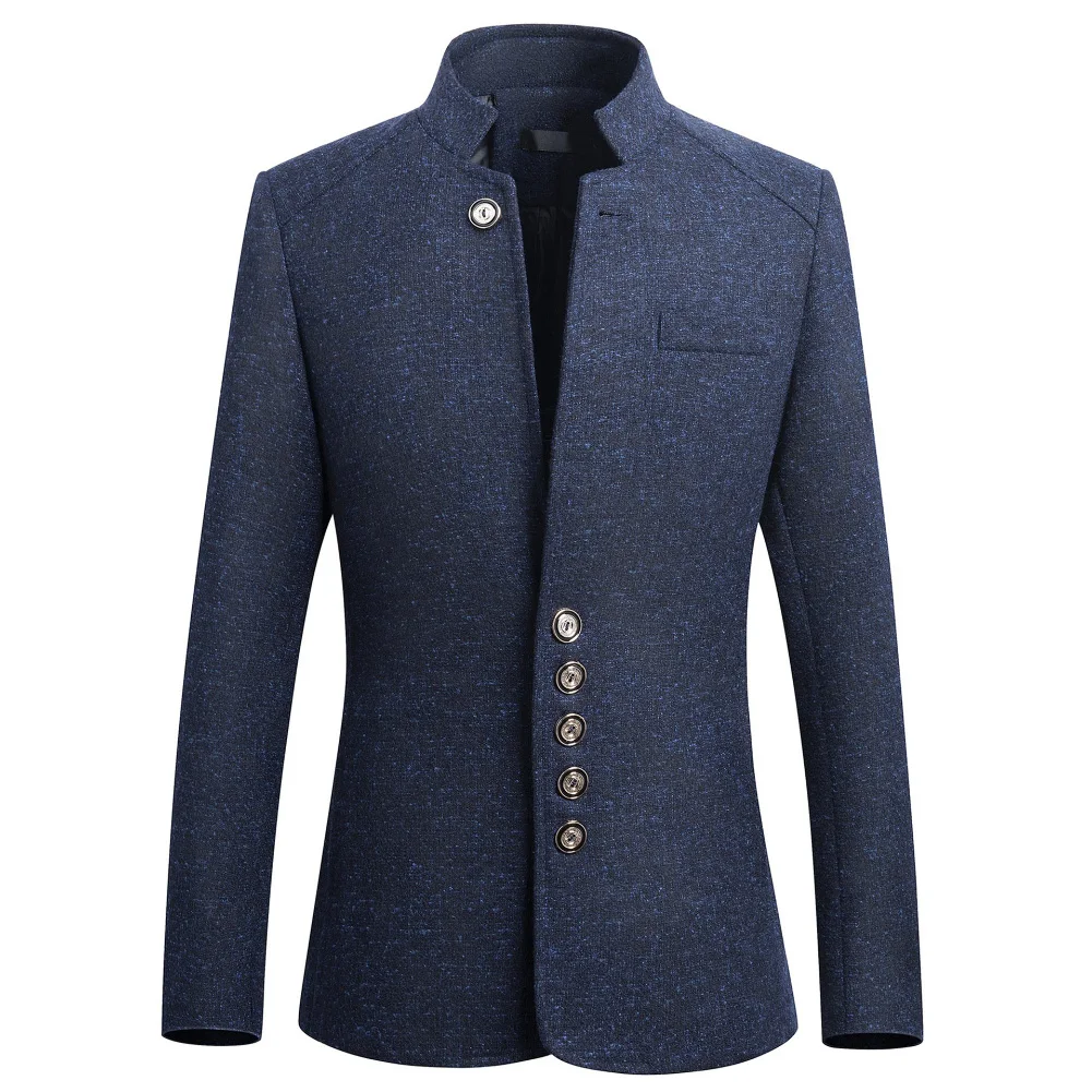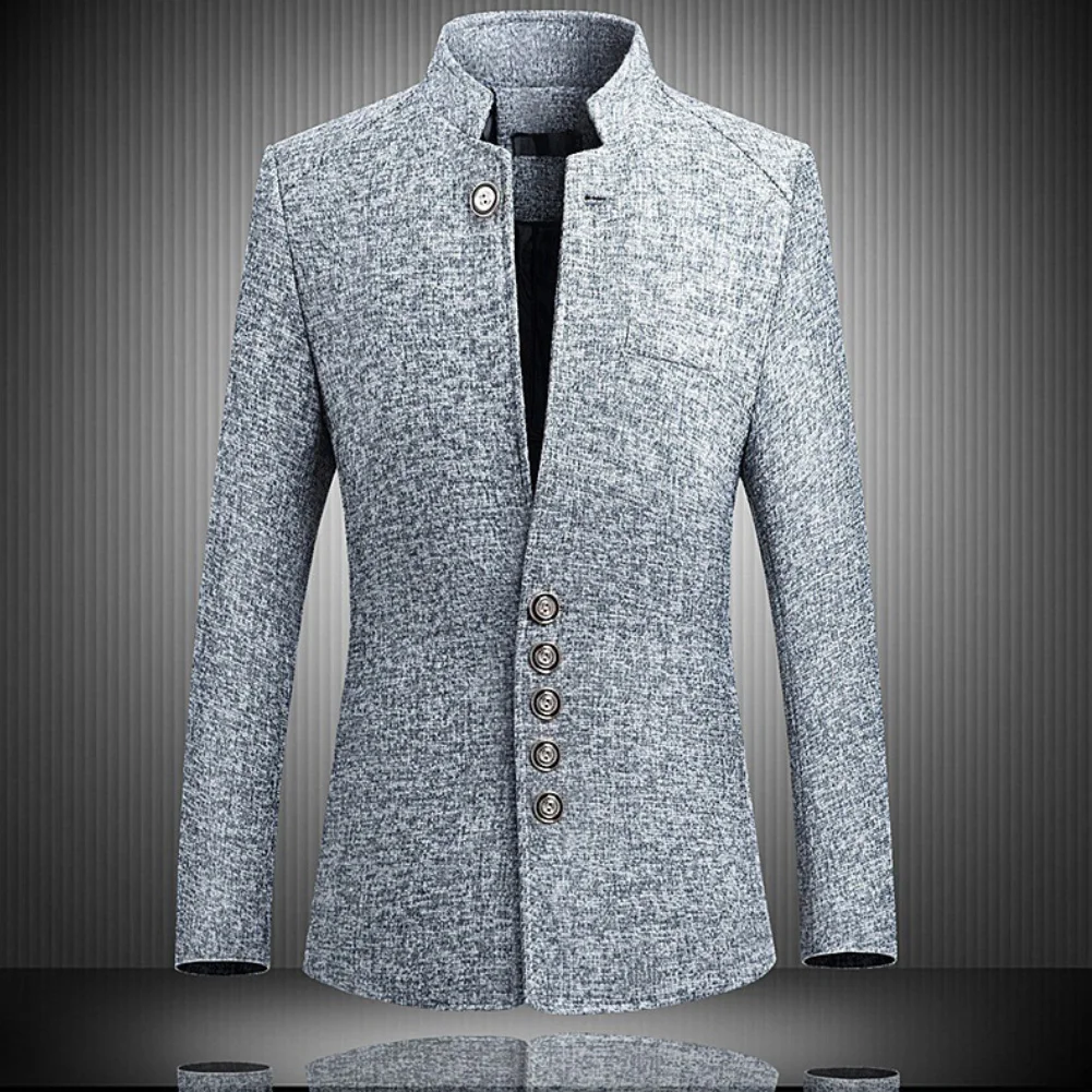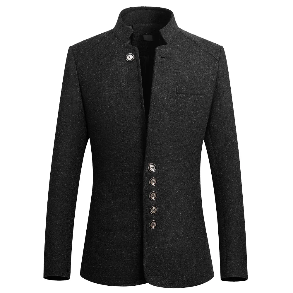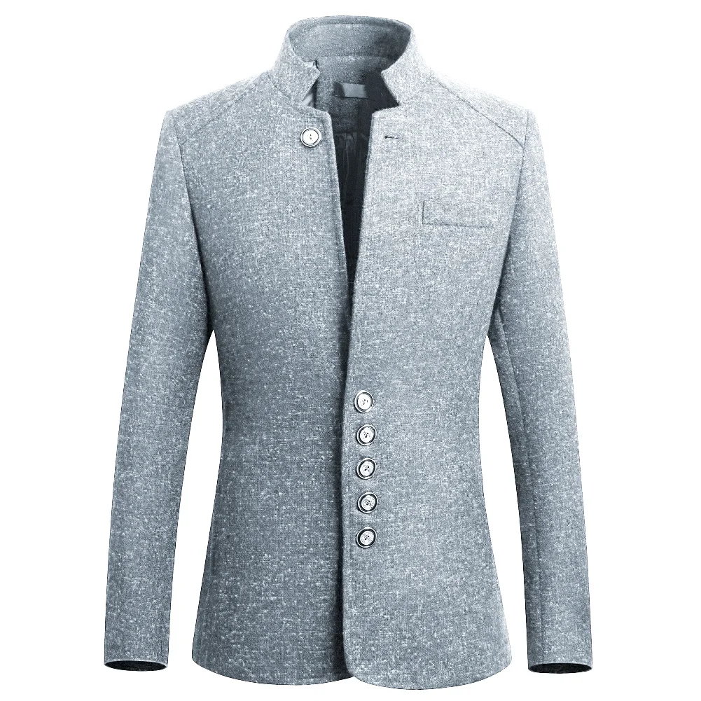 Модный мужской костюм со стоячим воротником, приталенный однобортный деловой пиджак