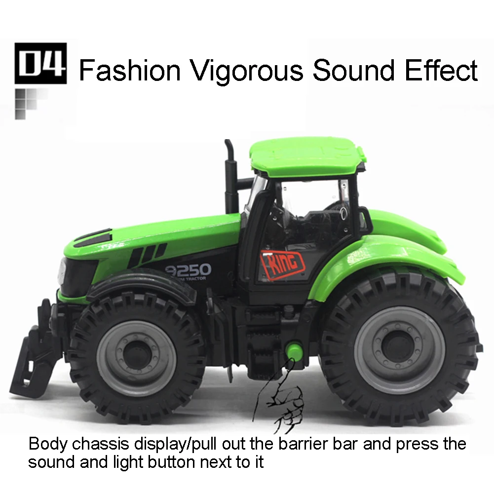 Характеристики: питание от инерции, сельскохозяйственный автомобиль с имитацией, светодиодный и звуковой эффект