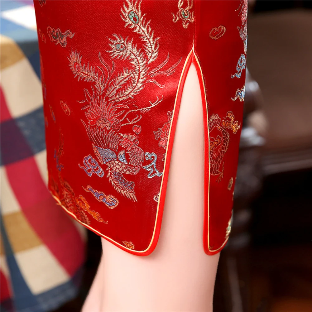 Особенности: китайский стиль, боковая щель, вышивка дракона и феникса